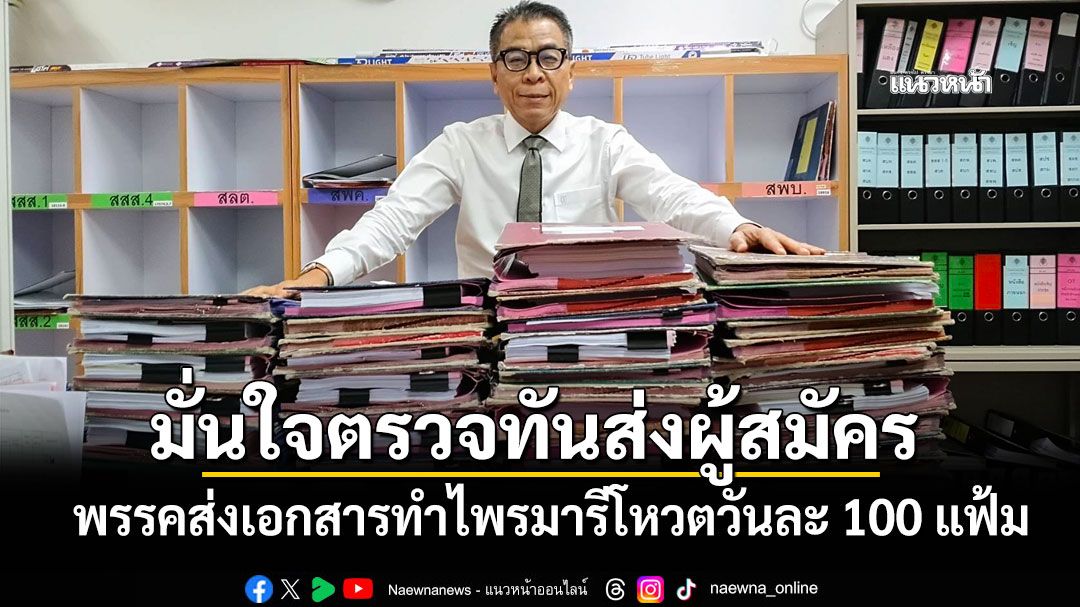 'แสวง'โชว์แฟ้มพรรคส่งเอกสารทำไพรมารีโหวตวันละ 100 แฟ้ม มั่นใจตรวจทันส่งผู้สมัคร ขอทำถูกกฎหมาย