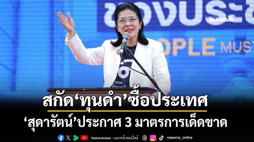 ลั่นกลองรบ!‘สุดารัตน์’ประกาศสงครามล้างบางคนโกงทันทีหากได้เป็นรัฐบาล ชี้คอร์รัปชันทำชาติล่มจม ชู 3 มาตรการเด็ดขาด‘เพิ่มโทษประหาร-ประชาชนถอดถอนองค์กรอิสระ-ตั้งป.ป.ช.ภาคประชาชน’ สกัด‘ทุนดำ’ซื้อประเทศไทย ยึดอำนาจบริหารด้วยเงินสกปรก