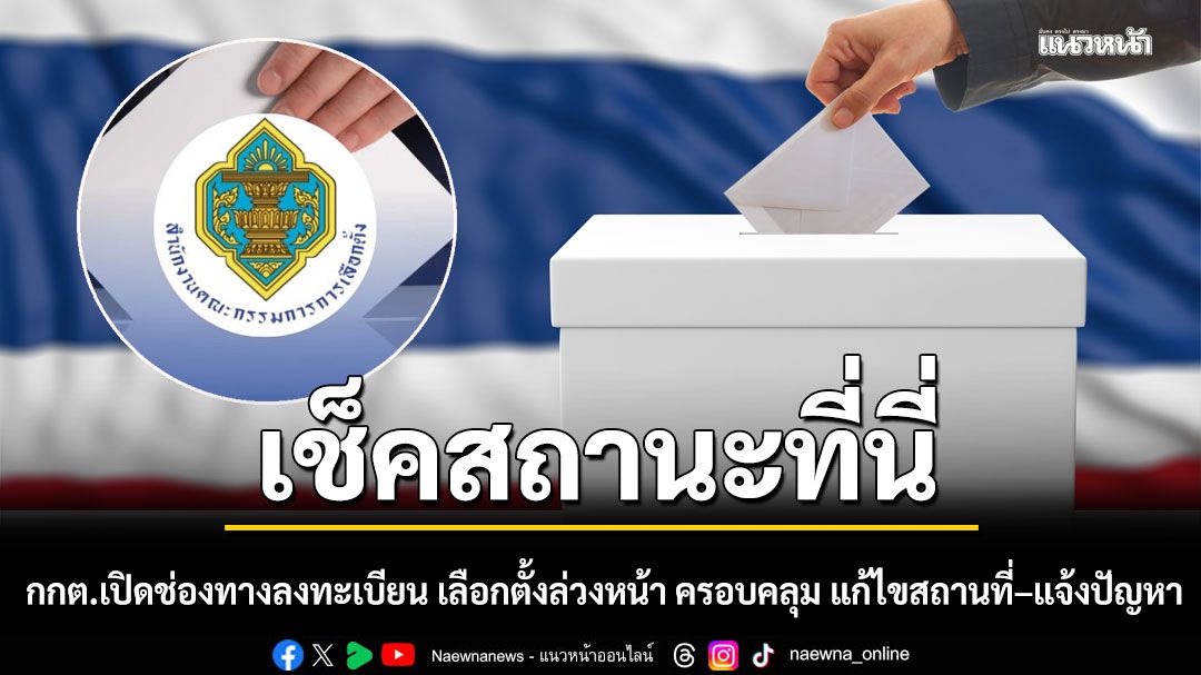 "กกต." เปิดช่องทางแก้ไขสถานที่–แจ้งปัญหา เช็คสถานะลงทะเบียนเลือกตั้งล่วงหน้า ครอบคลุมในเขต-นอกเขต-นอกราชอาณาจักร