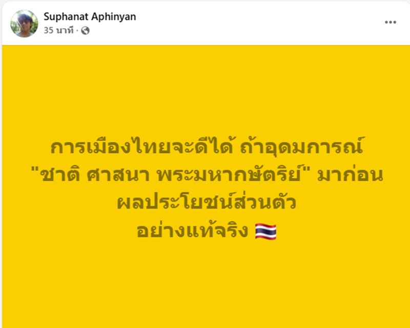 วันที่ 23 ธันวาคม 2568 ดร.ศุภณัฐ อภิญญาณ หรือ “ดร.นิว” นักวิจัยภายใต้สถาบันวิจัย MAST Center และ คณะวิศวกรรมชีวการแพทย์ University of Arkansas ประเทศสหรัฐอเมริกา โพสต์เฟซบุ๊ก Suphanat Aphinyan ว่า การเมืองไทยจะดีได้ ถ้าอุดมการณ์ "ชาติ ศาสนา พระมหากษัตริย์" มาก่อนผลประโยชน์ส่วนตัว อย่างแท้จริง