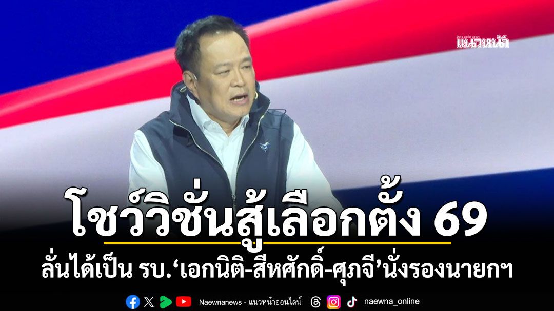 "อนุทิน"นำทัพภูมิใจไทย โชว์วิชั่นสู้เลือกตั้ง 69 ประกาศลั่นได้เป็นรัฐบาล"เอกนิติ-สีหศักดิ์-ศุภจี"นั่งรองนายกฯ บอกแคนดิเดตไม่สำคัญ-ไม่บังคับใจ ลั่น"ผมเป็นนายกฯ"