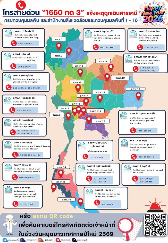 ทั้งนี้ หากหน่วยงานท้องถิ่นหรือประชาชนพบเหตุฉุกเฉินด้านมลพิษและสารเคมี สามารถแจ้งเหตุได้ที่สายด่วนมลพิษ โทร. 1650 ตลอด 24 ชั่วโมง.