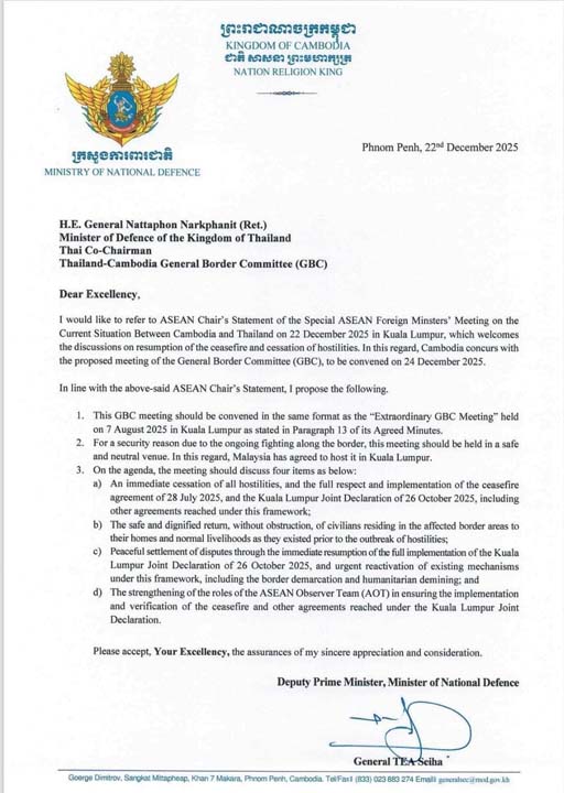 กัมพูชาไม่ได้เขียนมาเพื่อเปิดเจรจา แต่เขียนมาเพื่อ กำหนดเงื่อนไขของการเจรจาแทนไทย