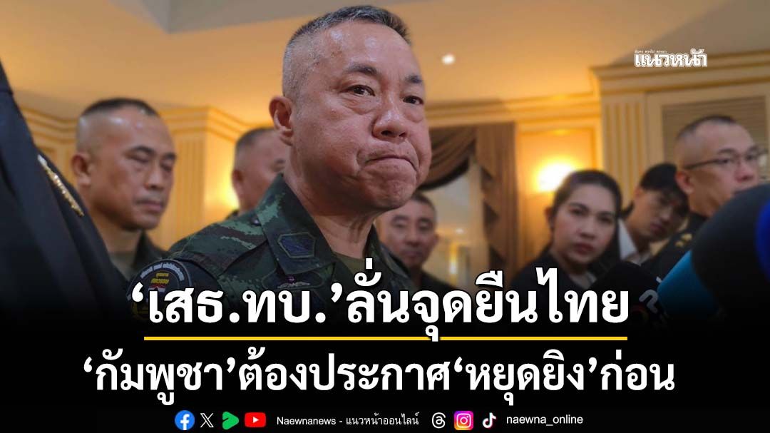 ‘เสธ.ทบ.’ลั่นจุดยืนไทย ‘กัมพูชา’ต้องประกาศ‘หยุดยิง’ก่อน ย้ำคุมพื้นที่อธิปไตยไทย 90% ชี้‘เขมร’ซุกอาวุธยุทโธปกรณ์ตอนในอื้อ