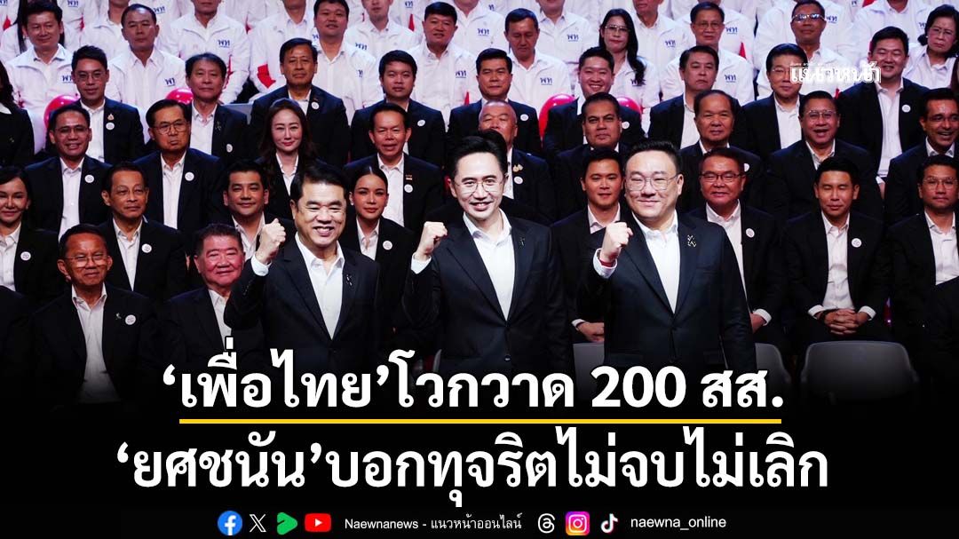‘เพื่อไทย’เปิดตัวผู้สมัคร สส.ปาร์ตี้ลิสต์-เขตทั่วประเทศ ‘จุลพันธ์’ชูสามเสาหลักพาประเทศไปข้างหน้า ‘สุริยะ’ย้ำเลือกตั้งครั้งนี้พร้อมมากที่สุด จะได้ สส. 200 คน ‘ยศชนัน’ลั่นยาเสพติด-ทุจริตไม่จบไม่เลิก ขอเลือกพท.ทั้งคนทั้งพรรค