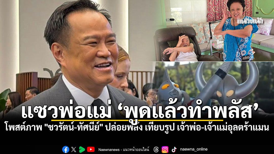 วันนี้ 25 ธันวาคม พ.ศ. 2568 นาย อนุทิน ชาญวีรกูล นายกรัฐมนตรีและรัฐมนตรีว่าการกระทรวงมหาดไทย ในฐานะหัวหน้าพรรคภูมิใจไทย เคลื่อนไหวบนโลกออนไลน์โพสต์ภาพลงเฟซบุ๊กส่วนตัว เป็นภาพของ นาย ชวรัตน์ ชาญวีรกูล และ นาง ทัศนีย์ ชาญวีรกูล บิดาและมารดาลงบนโลกออนไลน์ และทั้งสองคนกำลังทำสัญลักษณ์มือ พูดแล้วทำพลัส ซึ่งจะมีลักษณะเหมือนท่าปล่อยพลังของอุลตร้าแมน พร้อมเทียบภาพคู่กับภาพอุลตร้าแมน ซึ่งเป็นตัวเจ้าพ่อเจ้าแม่อุลตร้า และระบุข้อความว่า "อืมมมมม….พ่อกะแม่ก้อน้าาา…."
