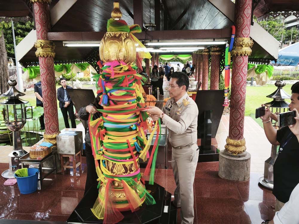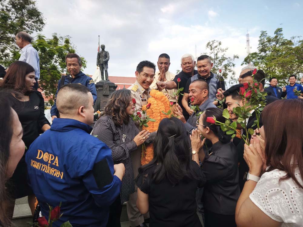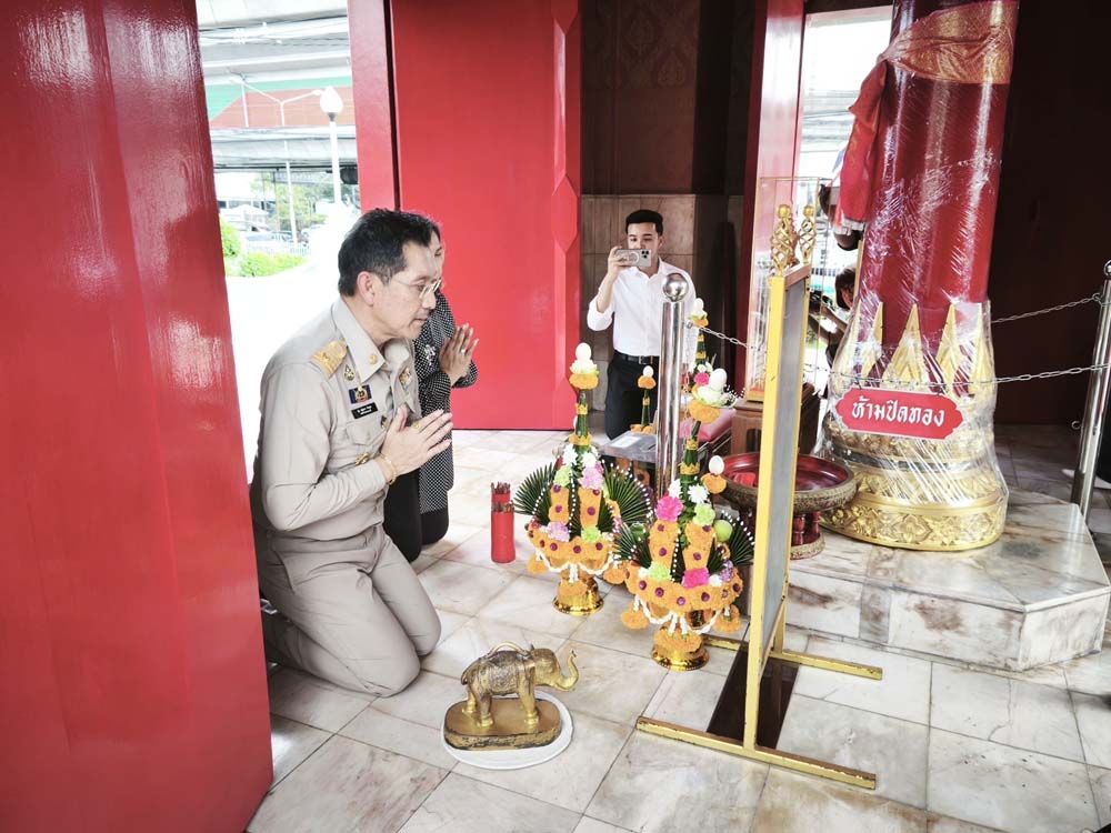 จากนั้นได้ไปไหว้ศาลหลักเมืองนนทบุรี ศาลพระภูมิ และอนุสาวรีย์รัชกาลที่ 5 โดยมีนายอำเภอ กำนัน ผู้ใหญ่บ้าน และสมาชิกสมาคมชาวใต้จังหวัดนนทบุรี ในพื้นที่ต่างๆมาให้กำลังใจอย่างเนืองแน่น