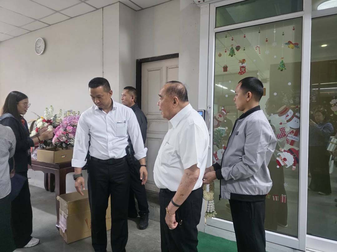 โดยในช่วงเช้าที่ผ่านมา พล.อ.อนุพงษ์ เผ่าจินดา อดีต รมว.มหาดไทย นำคณะกรรมการมูลนิธิป่ารอยต่อฯ พร้อมด้วยน้องๆ โรงเรียนนายร้อยพระจุลจอมเกล้า (จปร.) รุ่น 17 เข้าอวยพรและรับพรปีใหม่จาก พล.อ.ประวิตร โดยวันนี้สวมเสื้อเชิ้ตสีขาว