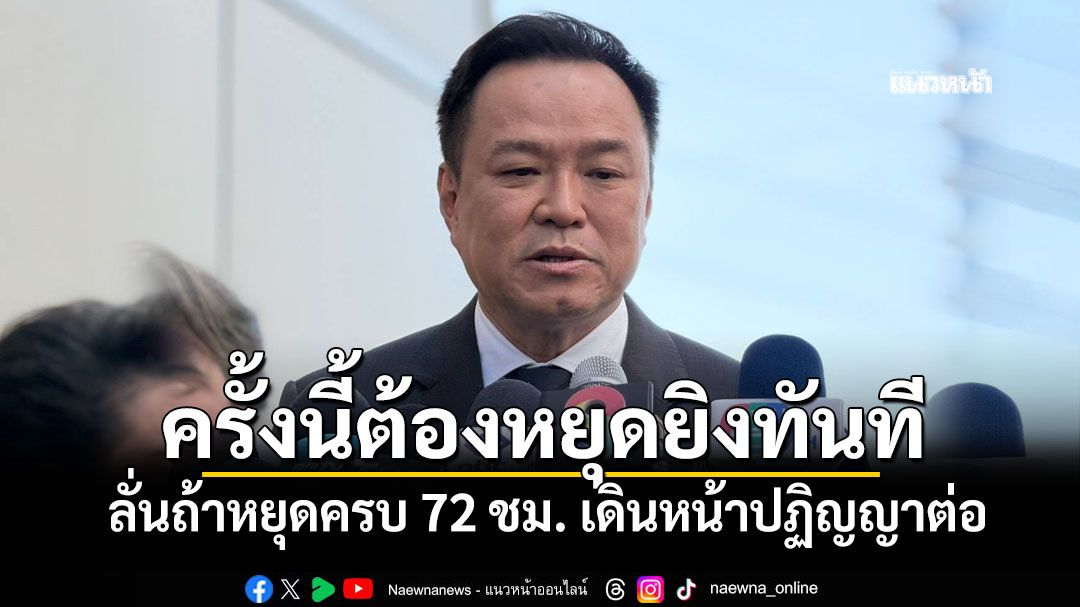 'อนุทิน'ลั่นถ้าหยุดยิงครบ 72 ชม. เดินหน้าปฏิญญาต่อ กร้าวลงนามครั้งนี้ต้องหยุดยิงทันที บอกคุย'ฮุน มาเนต'ไม่เป็นตามคำพูด