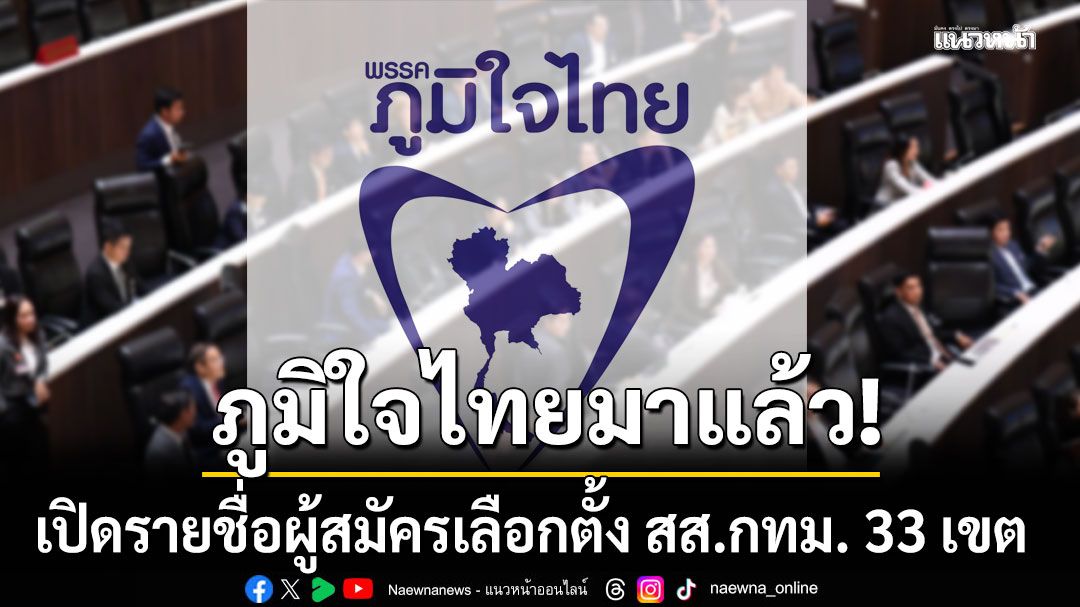 ‘ภูมิใจไทย’ เปิดชื่อ ‘ว่าที่ผู้สมัคร สส.กทม.’ ทั้ง 33 เขต ‘คนดัง - อดีต สส.’ เพียบ หลังจับหมายเลขพรุ่งนี้ ไหว้ศาลหลักเมืองเอาฤกษ์เอาชัย ก่อนลุยแยกย้ายหาเสียง