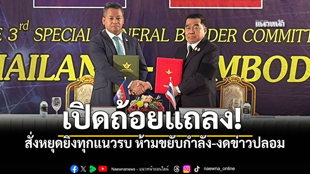 เปิดถ้อยแถลง Joint Statement การประชุม GBC ไทย-กัมพูชา พร้อมหยุดยิงทันที ตั้งแต่ 12.00 น. 27 ธ.ค.68 ไม่เคลื่อนย้ายกำลัง ร่วมกู้ทุ่นระเบิด-ปราบอาชญากรรมข้ามชาติ หลังยุดยิง 72 ชั่วโมง ไทยจะส่งตัวทหารกัมพูชา 18 นาย