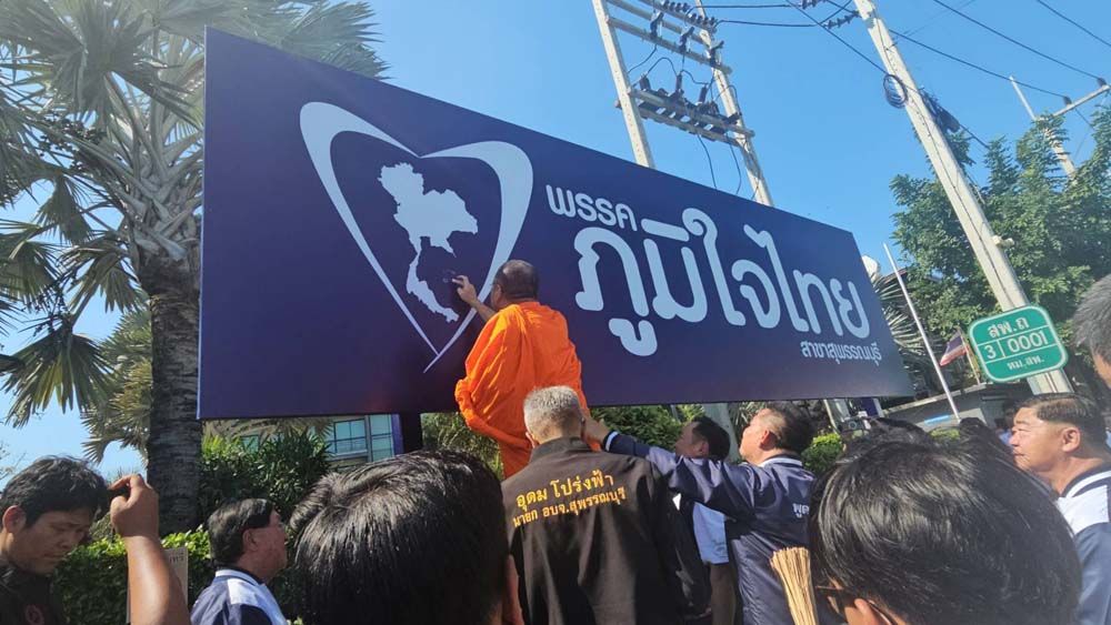 จากนั้นนายอนุทินได้ทำพิธีเปิดป้ายสาขาพรรคภูมิใจไทยที่จังหวัดสุพรรณบุรี