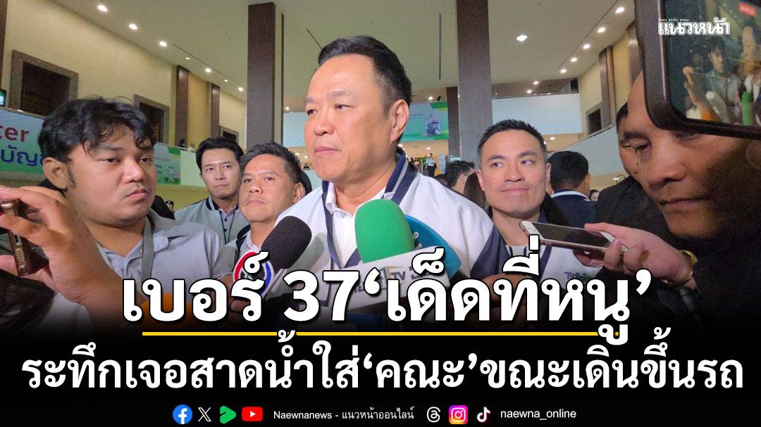 "อนุทิน" บอกได้เบอร์ 37 เด็ดที่หนู ไม่มีปัญหา เน้นนโยบาย-ผลงาน ขณะที่กลุ่มสนับสนุนพรรคการเมืองโชว์เถื่อน ปาขวดน้ำปริศนาปลิวข้ามหัว ขณะเดินขึ้นรถ