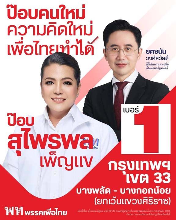 29 ธันวาคม 2568 นายสุไพรพล เพ็ญแข หรือ “ป๊อบ” ผู้สมัครสมาชิกสภาผู้แทนราษฎร เขตบางพลัด–บางกอกน้อย พรรคเพื่อไทย เปิดเผยถึงแนวทางการรณรงค์หาเสียงว่า ตนและนายจักรภพ เพ็ญแข คู่ชีวิต มีความเห็นตรงกันในการเลือกใช้ป้ายหาเสียงขนาดเล็ก คล้ายรูปแบบที่ผู้ว่าราชการกรุงเทพมหานคร นายชัชชาติ สิทธิพันธุ์ เคยใช้ เนื่องจากมีขนาดกะทัดรัด ให้ข้อมูลครบถ้วน ใช้งบประมาณน้อย และไม่กีดขวางการสัญจรหรือรบกวนสายตาประชาชนบนทางเท้า