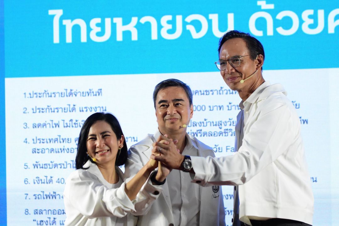 นายอภิสิทธิ์ กล่าวว่า เรามีประสบการณ์ในการทำงานร่วมกันมาและเป็นทีมเวิร์คที่ดี อาสามาเข้ามาเปลี่ยนแปลงให้คนไทยและประเทศไทย หลุดพ้นจากภาวะ ‘ทนหายใจ’ ไปสู่ ‘ไทยหายจน’ ด้วยทีมที่มีประสบการณ์การบริหารประเทศ มีความเชี่ยวชาญทางเศรษฐกิจ ความเชี่ยวชาญด้านเทคโนโลยี และทำงานเป็นเพื่อให้บรรลุเป้าหมายในการทำ GDP ของประเทศเติบโตได้ 5% ภายใน 4 ปี ร่วมกันแถลงเปิดตัว 4 เสาหลังสู่ 27 นโยบายไทยหายจน ด้วยคนทำเป็น 4 เสาหลักสู่ 27 นโยบายไทยหายจน