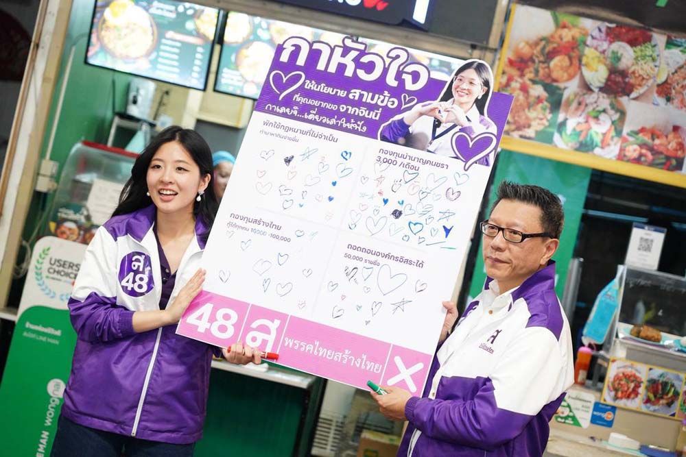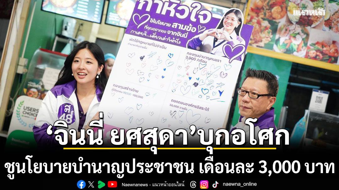 "จินนี่ ยศสุดา" ควงแคนดิเดตนายฯไทยสร้างไทย บุก อโศก ชู"ไทยสร้างไทย" ช่วยคนไทยหายเหนื่อย ชาวออฟฟิศขานรับ นโยบายบำนาญ 3,000 พักใช้กฎหมายที่ไม่จำเป็น