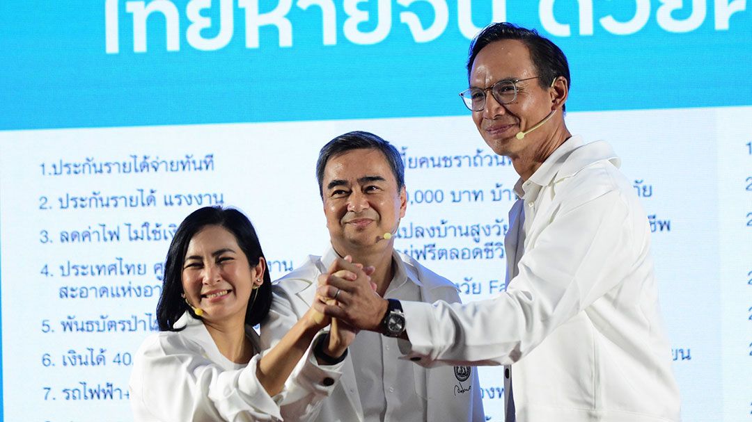 โดยนายอภิสิทธิ์ กล่าวว่า เรามีประสบการณ์ในการทำงานร่วมกันมาและเป็นทีมเวิร์คที่ดี อาสามาเข้ามาเปลี่ยนแปลงให้คนไทยและประเทศไทย หลุดพ้นจากภาวะ ‘ทนหายใจ’ ไปสู่ ‘ไทยหายจน’ ด้วยทีมที่มีประสบการณ์การบริหารประเทศ มีความเชี่ยวชาญทางเศรษฐกิจ ความเชี่ยวชาญด้านเทคโนโลยี และทำงานเป็นเพื่อให้บรรลุเป้าหมายในการทำ GDP ของประเทศเติบโตได้ 5% ภายใน 4 ปี ร่วมกันแถลงเปิดตัว 4 เสาหลังสู่ 27 นโยบายไทยหายจน ด้วยคนทำเป็น