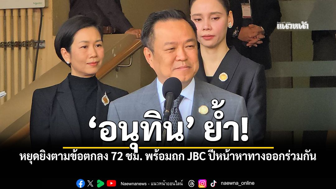 เมื่อเวลา10.00 น.วันที่ 30 ธ.ค. 2568 ที่ทำเนียบรัฐบาล นายอนุทิน ชาญวีรกูล นายกรัฐมนตรีและรมว.มหาดไทย ให้สัมภาษณ์ถึงกรณีช่วงเที่ยงวันเดียวกันนี้จะครบกำหนดหยุดยิง 72 ชั่วโมงว่า ทางกองทัพ รวมถึงสภาความมั่นคงแห่งชาติ (สมช.) น่าจะมีการดำเนินการ ตามที่ได้ระบุไว้ในการลงนามแถลงการณ์ร่วม Joint Statement ตามถ้อยแถลงในเอกสาร
