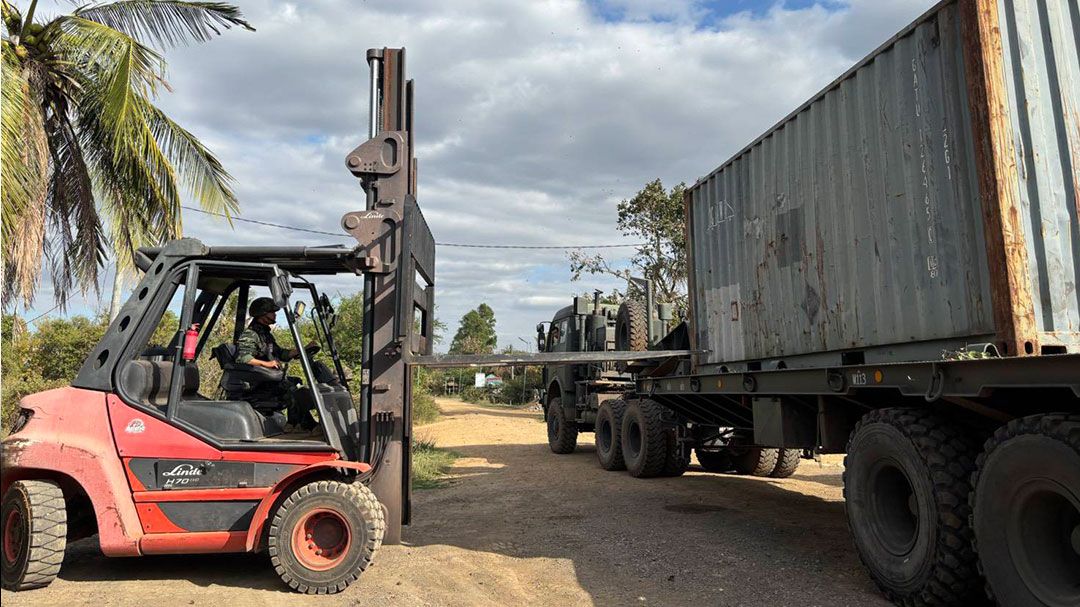 ผู้สื่อข่าวรายงานว่า เพจ Army Military Force โพสต์ข้อความพร้อมภาพที่หมู่บ้านโจกเจย หรือ หมู่บ้านหนองจาน อ.โคกสูง จ.สระแก้ว ที่กกล.บูรพายึดคืนมาจากเขมร ก่อนลงนามหยุดยิง 72 ชั่วโมง วันนี้ (30 ธันวาคม เจ้าหน้าที่ทหารนำตู้คอนเทนเนอร์ที่ได้รับบริจาคมาก่อนหน้านี้มาวางกั้นเป็นแนวรั้ว ตามแนวชายแดน พร้อมปักธงชาติแสดงแนวเขตอธิปไตยของไทย สร้างความปลอดภัยในชีวิตและทรัพย์สินให้ชาวบ้านในพื้นที่