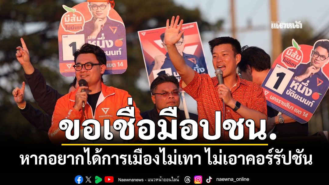 เมื่อช่วงค่ำวันที่ 1 ม.ค.2569 อ.ปากช่อง จ.นครราชสีมา นายณัฐพงษ์ เรืองปัญญาวุฒิ หัวหน้าพรรคประชาชน ลงพื้นที่หาเสียง อ.ปากช่อง จ.นครราชสีมา ย้ำอยากได้การเมืองไม่เทา ไม่เอาคอร์รัปชัน เชื่อมือพรรคประชาชนได้ นโยบายสวัสดิการดี มีให้ทุกคน ทั้งเด็กเล็ก คนทำงาน คนชรา ประชาชนมีคุณภาพชีวิตที่ดีขึ้นแน่