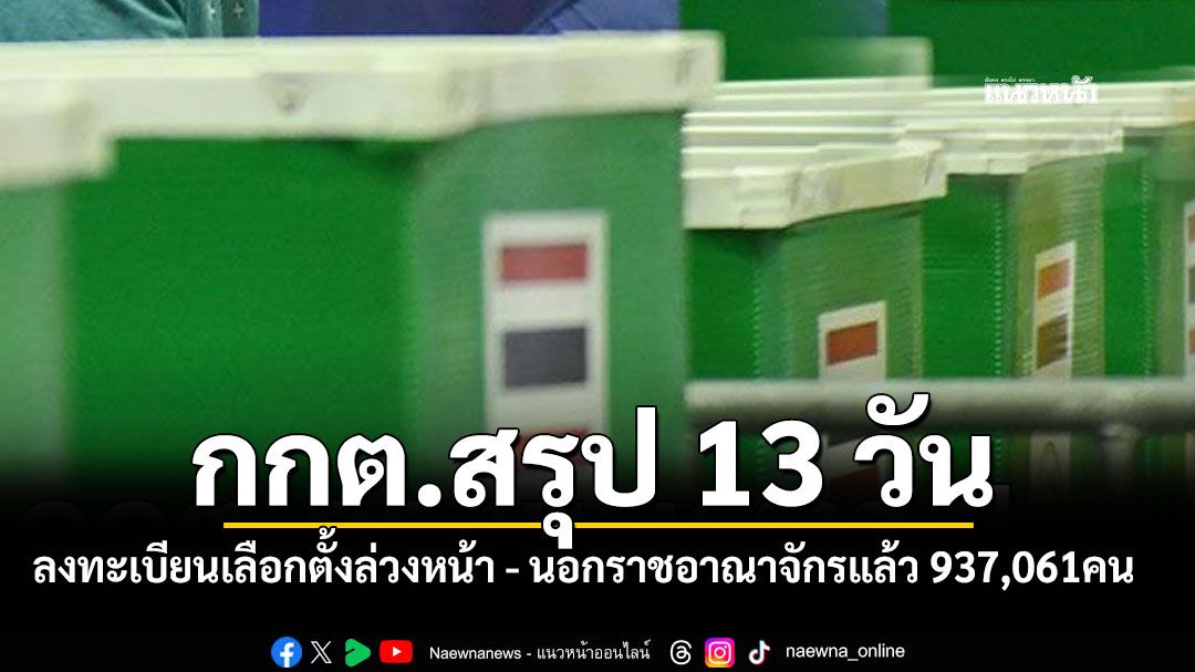 กกต.สรุป 13 วันลงทะเบียนเลือกตั้งล่วงหน้า - นอกราชอาณาจักร คนลงทะเบียนแล้ว 937,061คน