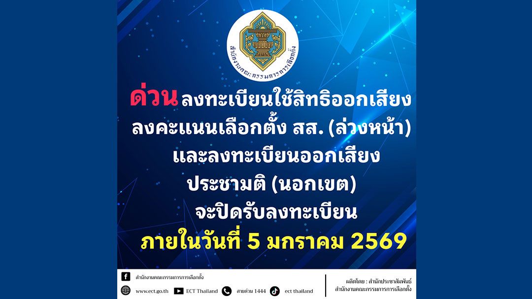 เมื่อวันที่ 3 มกราคม 2569 สำนักงานคณะกรรมการการเลือกตั้ง (กกต.) ประชาสัมพันธ์ให้ผู้มีสิทธิเลือกตั้ง สส.และผู้มีสิทธิออกเสียงประชามติ ที่ไม่สามารถไปใช้สิทธิเลือกตั้ง สส.และออกเสียงประชามติที่หน่วยเลือกตั้งที่มีชื่อ หรือตามทะเบียนบ้านได้ ให้ยื่นคำขอลงทะเบียนใช้สิทธิออกนอกราชอาณาจักร ยื่นคำขอได้ถึงวันที่ 5 มกราคมนี้ สำหรับผู้มีสิทธิเลือกตั้งที่ไม่สามารถไปใช้สิทธิเลือกตั้ง สส.ในวันอาทิตย์ที่ 8 กุมภาพันธ์ และประสงค์จะไปใช้สิทธิออกเสียงลงคะแนนก่อนวันเลือกตั้ง สส.ในวันอาทิตย์ที่ 1 กุมภาพันธ์ ให้ยื่นคำขอลงทะเบียนผ่านช่องทางต่อไปนี้ ยื่นนายทะเบียนอำเภอ/นายทะเบียนท้องถิ่น หรือเอกอัครราชทูตหรือผู้ได้รับมอบหมาย ภายในวันและเวลาราชการ ยื่นคำขอทางไปรษณีย์ ถือวันประทับตราไปรษณีย์เป็นสำคัญ และยื่นคำขอทางเครือข่ายอินเทอร์เน็ต เฉพาะนอกเขต - นอกราชอาณาจักร ยื่นได้ตลอด 24 ชั่วโมง โดยระบบจะปิดอัตโนมัติ ในวันที่ 5 มกราคม 2569 เวลา 24.00 น. (ตามเวลาประเทศไทย)