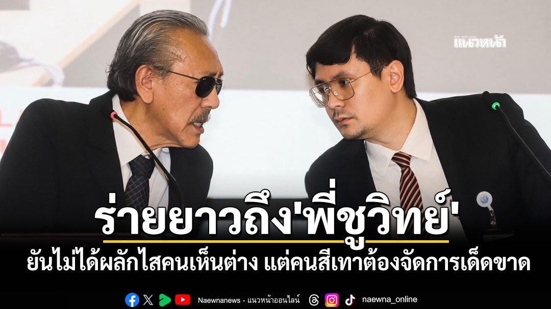พี่ชูวิทย์ครับ ในฐานะผู้ที่รู้จักโลกมืดเป็นอย่างดี ผมเชื่อว่าพี่คงมองออกว่า มีความพยายามใส่ร้ายพวกเรามากเพียงใด ผมคิดว่าพี่น่าจะทราบดีว่า การหยิบยกทั้งเรื่อง 112 และการกล่าวหาว่าพวกเราด้อยค่าทหารนั้น ถูกใช้เป็นเครื่องมือเพื่อทุบทำลายพรรคประชาชน เพราะคนเหล่านี้กำลังหวาดกลัวยุคสมัยใหม่ที่พรรคประชาชนกำลังสร้าง