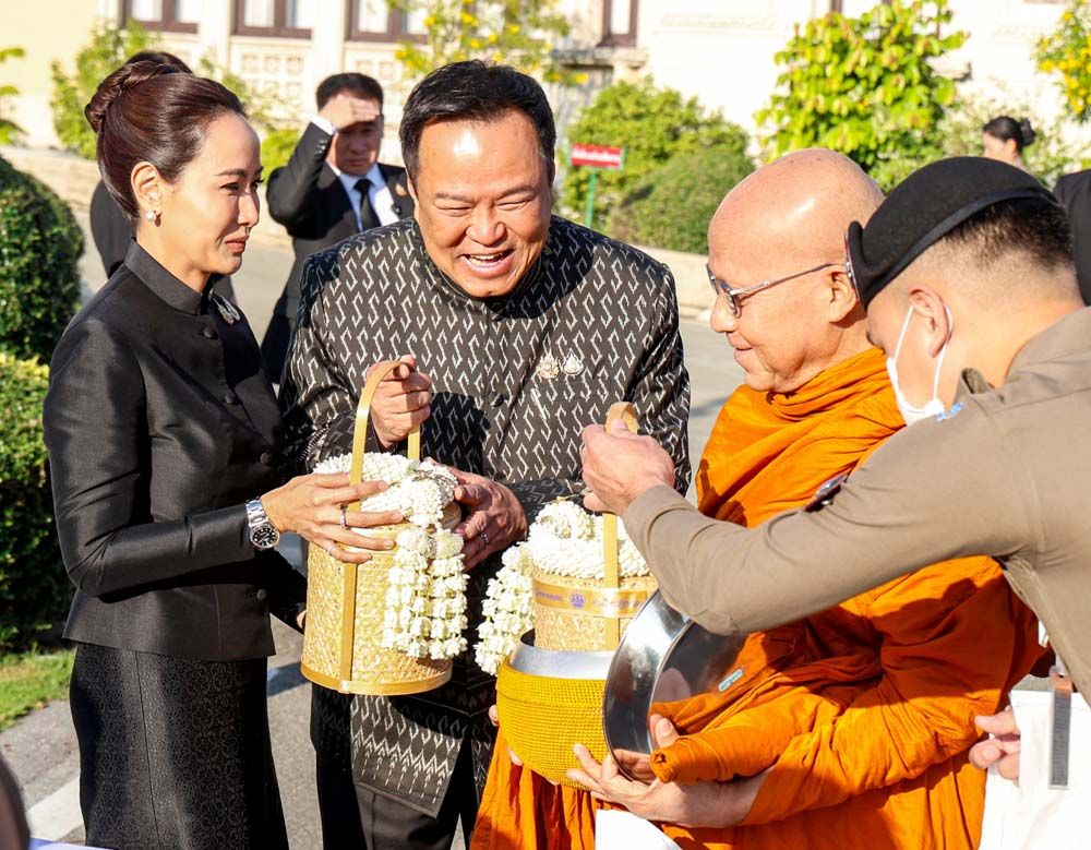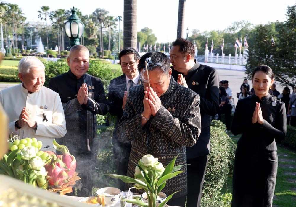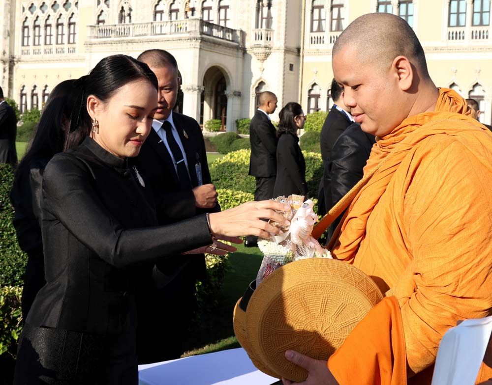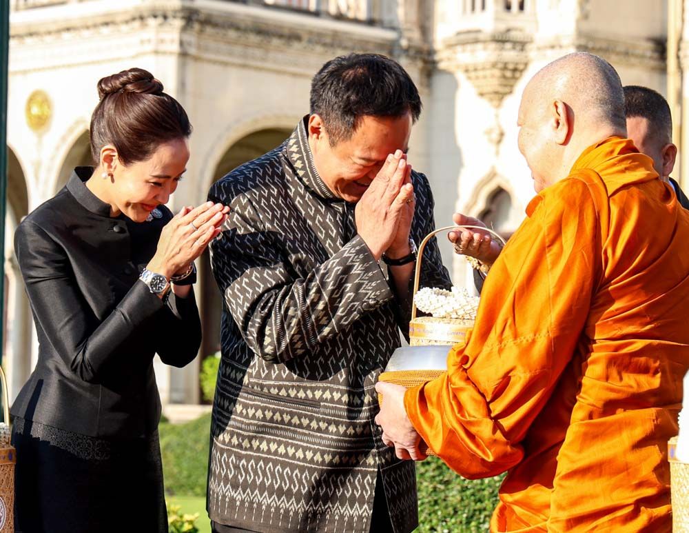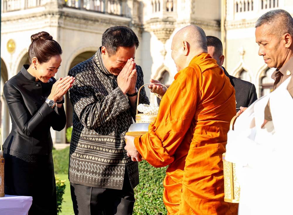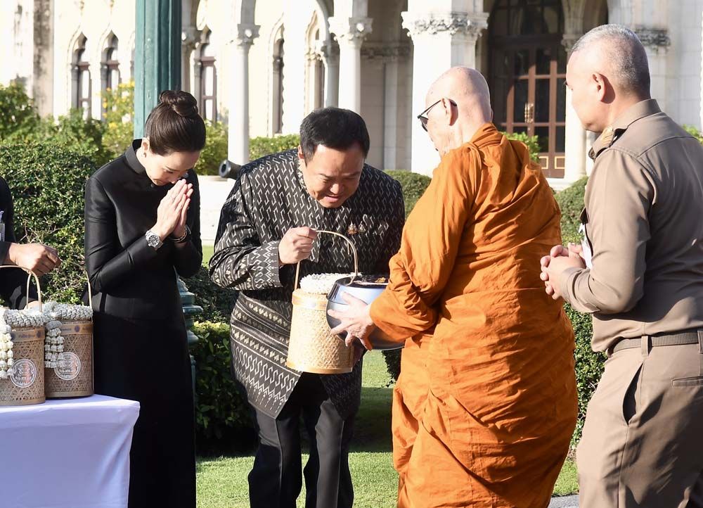 โดยเมื่อนายกรัฐมนตรีเดินทางถึงตึกสันติไมตรี (หลังนอก) พระสงฆ์จำนวน 10 รูป ขึ้นนั่งอาสน์สงฆ์ นายกรัฐมนตรีจุดธูปเทียนบูชาพระรัตนตรัย เจ้าหน้าที่อาราธนาศีล พระสงฆ์ให้ศีลและเจริญพระพุทธมนต์ นายกรัฐมนตรี รองนายกรัฐมนตรี พร้อมด้วย ครม. ถวายผ้าไตรและถวายเครื่องไทยธรรม จำนวน 10 รูป โดยนายกรัฐมนตรีถวายสมเด็จพระพุฒาจารย์ วัดไตรมิตรวิทยาราม ประธานสงฆ์ พระสงฆ์สวดอนุโมทนา นายกรัฐมนตรีกรวดน้ำรับพร ประธานสงฆ์ประพรมน้ำพระพุทธมนต์