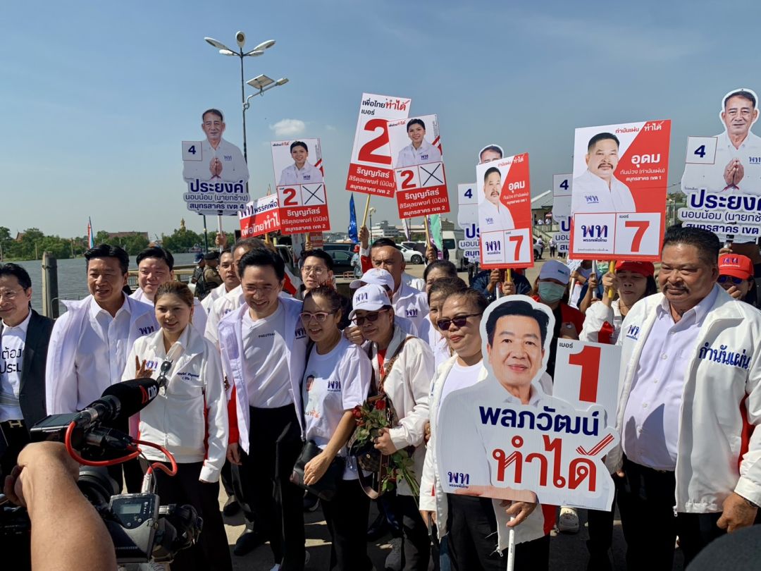 สำหรับคณะพรรคเพื่อไทยที่มาในครั้งนี้ อาทิ นายวิสุทธิ์ ไชยณรุณ รองหัวหน้าพรรค และผู้สมัคร สส.บัญชีรายชื่อ, นายพงศ์กวิน จึงรุ่งเรืองกิจ รองหัวหน้าพรรค และผู้สมัคร สส.บัญชีรายชื่อ, นายศึกษิษฏ์ ศรีจอมขวัญ โฆษกพรรค และผู้สมัคร สส.บัญชีรายชื่อ, ทพญ.ศรีญาดา ปาลิมาพันธ์ นายทะเบียนพรรค และผู้สมัคร สส.บัญชีรายชื่อ สำหรับผู้สมัคร สส.เขต จ.สมุทรสาคร ประกอบด้วย นายอุดม กันม่วง เขต 1, น.ส.ริญญภัสร์ สิริตุยพงศ์ เขต 2, นายพลภวัฒน์ ชำนาญวาด เขต 3, นายประยงค์ นอบน้อม เขต 4