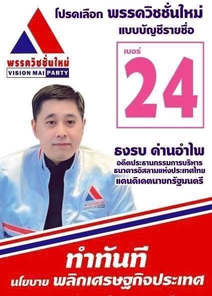 พรรควิชชั่นใหม่ เดินหน้าหาเสียงชูนโยบาย ปรับระบบการค้า การเงินแห่งอนาคตที่ไร้ดอกเบี้ย เพื่อให้ประชาชนอยู่ดีมีสุขเท่าเทียมกัน “ธงรบ ด่านอำไพ”ประธานที่ปรึกษายุทธศาสตร์ แคนดิเดทนายกรัฐมนตรี คนที่ 1 ประกาศทำทันทีนโยบายพลิกเศรษฐกิจประเทศ เพิ่มโอกาสใหม่ให้คนไทยทุกคนไม่ใช่แค่นั่งปั้นตัวเลขGDP