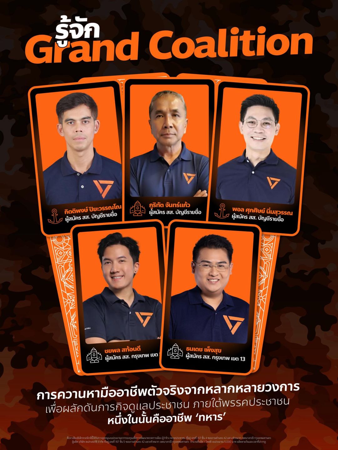 'ปชน.'กลบปมด้อยค่าทหาร หงายการ์ดโชว์ 5 ผู้สมัครอดีตนายทหาร ร่วมเป็น 'Grand Coalition'