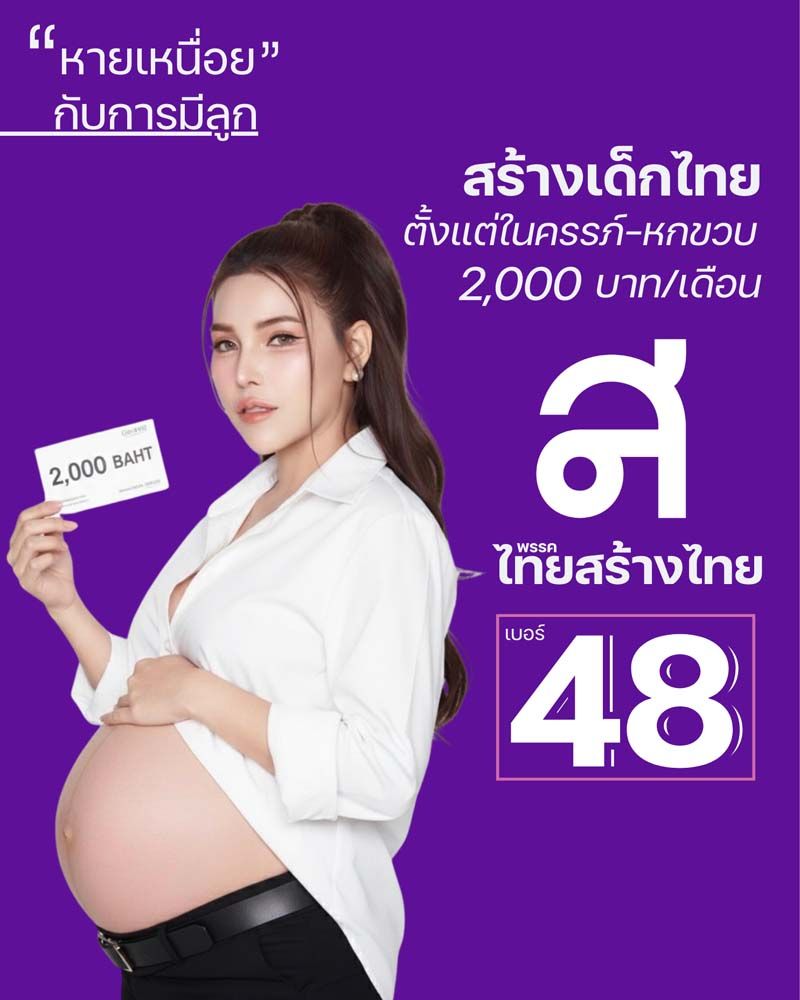 พรรคไทยสร้างไทยจึงประกาศนโยบายทำให้คนไทยหายเหนื่อยและหมดกังวลกับการมีลูก ด้วยการออกคูปองเลี้ยงลูกเดือนละ 2,000 บาท ให้ตั้งแต่เริ่มตั้งครรภ์ไปจนถึงลูกอายุ 6 ขวบ เนื่องจากช่วงอายุนี้เป็นโอกาสทองที่จะพัฒนาสมองและร่างกายของเด็กได้ดีที่สุด โดยคูปองดังกล่าวจะใช้แลกเป็นนม วิตามิน และสิ่งจำเป็นในการดูแลลูกตามคำแนะนำของแพทย์ในโครงการอย่างใกล้ชิด เพื่อให้เด็กไทยได้รับการดูแลให้อิ่มท้องสมองดี ลดภาระของพ่อแม่ และถือเป็นการลงทุนสร้างคนที่มีคุณภาพเพื่อเป็นกำลังสำคัญในการสร้างชาติ พร้อมทั้งช่วยจูงใจให้คู่สมรสตัดสินใจมีบุตรเพื่อแก้ปัญหาอัตราการเกิดต่ำ
