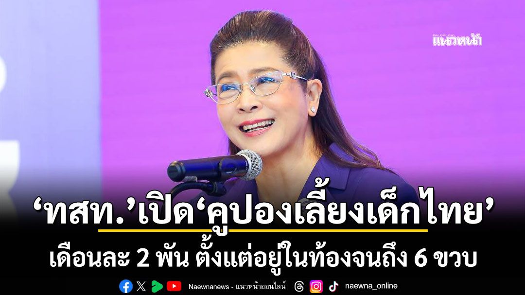 "ไทยสร้างไทย"เปิด"คูปองเลี้ยงเด็กไทย"เดือนละ 2,000 บาท ตั้งแต่อยู่ในท้องจนถึง 6 ขวบ 1 ใน 4 นโยบาย"หายเหนื่อย" เพื่อสร้างเด็กไทยให้ฉลาด ลดภาระพ่อแม่ ชี้งบมอเตอร์จีพี 4,000 ล้านยังให้ได้ แล้วทำไมจะลงทุนเพื่อสร้างเด็กไทยจะไม่ได้