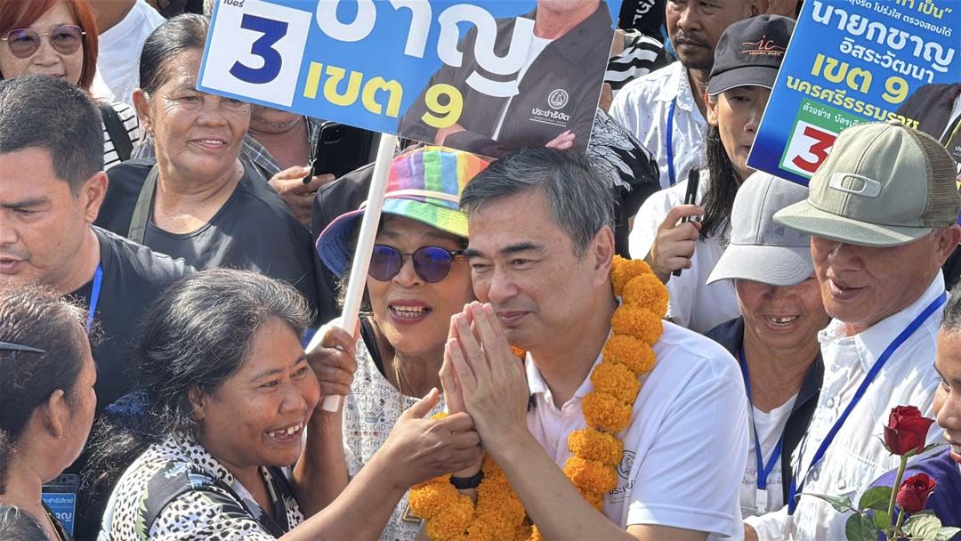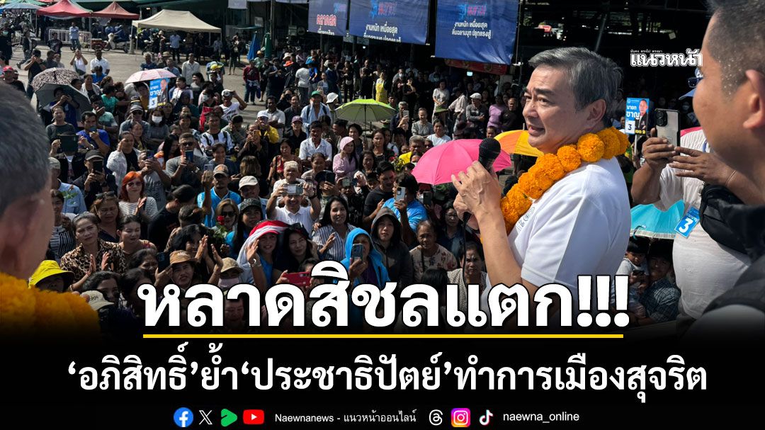 หลาดสิชลแตก! "อภิสิทธิ์"ลุยเมืองคอน ช่วย"ชาญวัฒนา"ผู้สมัคร สส.เขต 9 ชูนโยบายเกิดปั๊ปรับ 65,000-โตมารับเงินแสน-เบี้ยสูงวัย 1 พันบาทถ้วนหน้า-เรียนฟรีมีจริง ย้ำประชาธิปัตย์ทำการเมืองสุจริต ปลุก ปชช.ร่วมปราบทุนเทา อย่าให้เขาเอาเงินสีอะไรไม่รู้มาซื้อเราได้