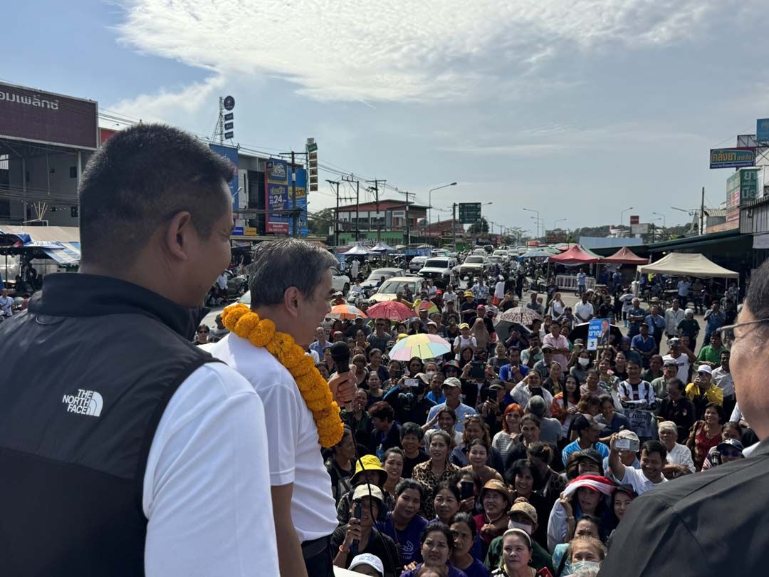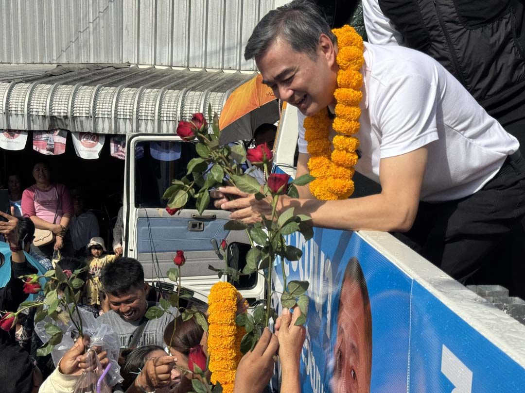 โดยทันทีที่รถของนายอภิสิทธิ์ จอดบริเวณหน้าตลาดมีประชาชนรอต้อนรับจำนวนมาก มีการส่งเสียงเชียร์พร้อมกับมอบดอกกุหลาบและพวงมาลัย และขอถ่ายรูปด้วยตลอดเส้นทาง ซึ่งนายอภิสิทธิ์ได้เดินทักทายพี่น้องประชาชนในตลาด ก่อนจะขึ้นเวทีปราศรัยขอคะแนนเสียงและนำเสนอนโยบาย