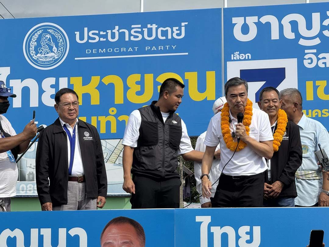 เมื่อวันที่ 7 มกราคม 2569 ที่ตลาดสดเทวดา อ.สิชล จ.นครศรีธรรมราช นายอภิสิทธิ์ เวชชาชีวะ หัวหน้าพรรคประชาธิปัตย์ (ปชป.) พร้อมด้วย นายชัยชนะ เดชเดโช รองหัวหน้าพรรคประชาธิปัตย์ ดูแลพื้นที่ภาคใต้ , นายสาทิตย์ วงศ์หนองเตย รองหัวหน้าพรรคประชาธิปัตย์ ลงพื้นที่ช่วยหาเสียงสนับสนุน นายชาญวัฒนา อิสระวัฒนา ผู้สมัคร สส.นครศรีธรรมราช เขต 9 หมายเลข 3