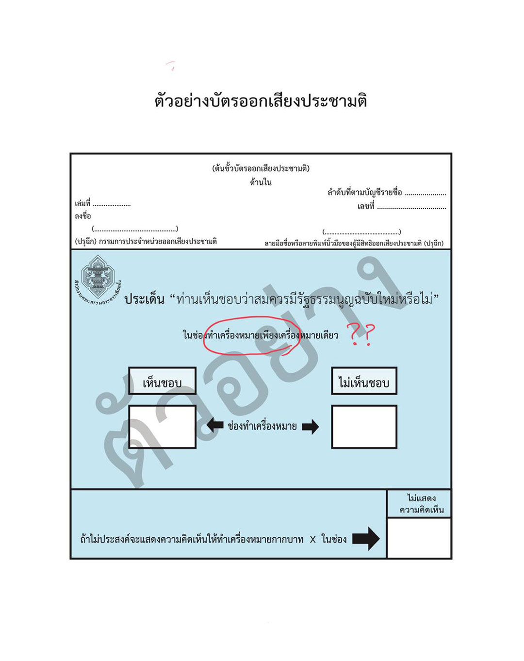 ซึ่งข้อความที่ถูกต้องคือ “โปรดทำเครื่องหมายกากบาท X ในช่องทำเครื่องหมายเพียงเครื่องหมายเดียว” ตกไป 1 บรรทัด