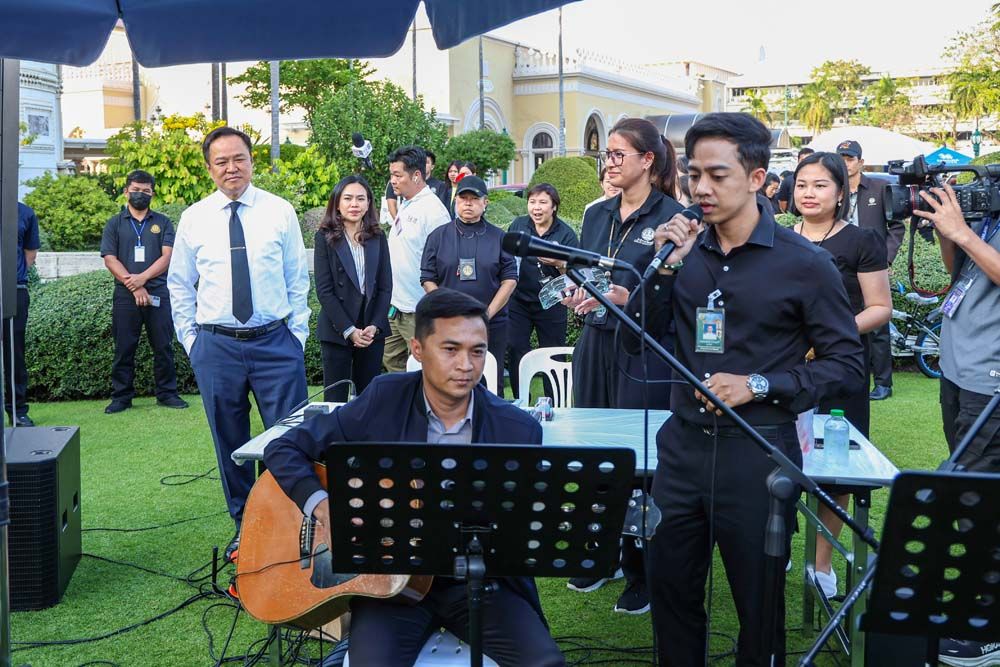 จากนั้นนายกฯเดินทักทายเด็กๆและถ่ายรูปด้วยกันอย่างเป็นกันเอง พร้อมเดินดูการเตรียมจัดซุ้มกิจกรรมต่างๆในงานวันเด็ก และช่วงหนึ่งได้แวะดูวงดนตรีที่นักร้องได้ร้องเพลงใจสั่งมาและเพลงซมซาน ของศิลปินวงโลโซ ซึ่งนายกฯได้ร้องคลอไปด้วยอย่างอารมณ์ดี