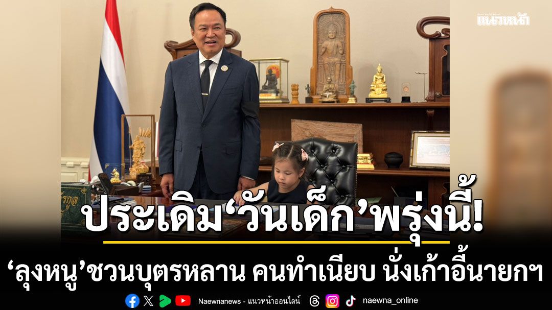 เมื่อเวลา 15.30 น. วันที่ 9 ม.ค.69 ที่ทำเนียบรัฐบาล นายอนุทิน ชาญวีรกูล นายกรัฐมนตรีและรมว.มหาดไทย ได้เปิดโอกาสให้บุตรหลานของ ข้าราชการและเจ้าหน้าที่ของหน่วยงานภายในทำเนียบรัฐบาล ได้นั่งเก้าอี้นายกรัฐมนตรี เนื่องในวันเด็กแห่งชาติ ประจำปี 2569 ซึ่งเป็นกิจกรรมที่จัดเป็นประจำทุกปี เนื่องจากในวันเด็กแห่งชาติ ซึ่งปีนี้ตรงกับวันที่ 10 ม.ค. เจ้าหน้าที่เหล่านี้จะต้องมาจัดกิจกรรมวันเด็กให้กับเด็กๆทุกๆคนที่มาร่วมกิจกรรม จึงไม่มีเวลาพาบุตรหลานของตนเองเที่ยวงานวันเด็ก