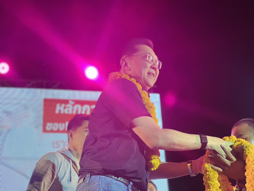 จากนั้น นายจตุพรได้ขึ้นเวทีปราศรัย โดยกล่าวตอนหนึ่งว่า ถ้าพรรคโอกาสใหม่ได้เป็นรัฐบาล หรือได้ สส. ทั้ง 33 เขต ของกทม. จะผลักดันแก้ไขปัญหาเรื่องสิ่งแวดล้อม สุขอนามัย เรื่องทางการแพทย์ เรื่องชุมชนแออัด ชาว กทม. จะได้สูดอากาศสะอาด บริสุทธิ์ จะเพิ่มพื้นที่สีเขียว แบบพ็อกเก็ตปาร์ค มีสวนเล็กๆทั่ว กทม. เราจะทำนโยบายกทม.สว่าง 24 ชม. มีเราไม่มีมืด เพราะ กทม.เป็นหมุดหมายของการท่องเที่ยว ถ้ากทม. ดีจะเชื่อมต่อไปต่างจังหวัดได้ ขณะที่เรื่องปัญหาน้ำท่วมต้องแก้ปัญหาอย่างยั่งยืน ซึ่งพรรคมีแผนทำงานและเมกะโปรเจกต์ แก้ปัญหาอย่างยั่งยืน กทม. คือพื้นที่ที่อยากจะฝาก ให้อยู่ในอ้อมกอดของประชาชน ขอโอกาสให้พรรคโอกาสใหม่ เบอร์ 44 ทั้งนี้ ปัญหาต่างๆ ประชาชนรอไม่ได้ โดยเราจะทำ 4 นโยบาย ที่ทั่วถึง เท่าเทียม และเป็นธรรม ประกอบด้วย 1. รัฐสวัสดิการ ดูแลตั้งแต่ก่อนเกิดจนถึงไปสวรรค์ 2.เรื่องเศรษฐกิจ แช่แข็งหนี้ 2 - 3 ปี เติมเงินเข้าระบบ พัฒนาเครื่องจักรให้มีคุณภาพ การท่องเที่ยว การเกษตรร่ำรวย การส่งออกต้องพัฒนาเพื่อรายได้ทั้งหมดมาช่วยประชาชนในประเทศ เศรษฐกิจมีหลายเรื่องที่ต้องดำเนินการ ต้องเกิดการแข่งขัน พัฒนาทักษะในการทำงาน ค่าแรงต้องมีความเหมาะสม 3.ภัยพิบัติ น้ำท่วม น้ำแล้ง ดินโคลนถล่ม PM 2.5 เรามีแผนแก้ปัญหาระยะยาวเรียบร้อย ยืนยันจะแก้ปัญหาไม่ให้น้ำท่วมกรุงเทพฯ ต้องมีระบบเตือนภัยที่ชัดเจน สามารถอพยพประชาชนไปอยู่ในพื้นที่ปลอดภัยได้ทันท่วงที 4.เรื่องสังคม ต้องจัดการให้เป็นระบบเพื่อเข้าถึงสวัสดิของรัฐได้อย่างเหมาะสม