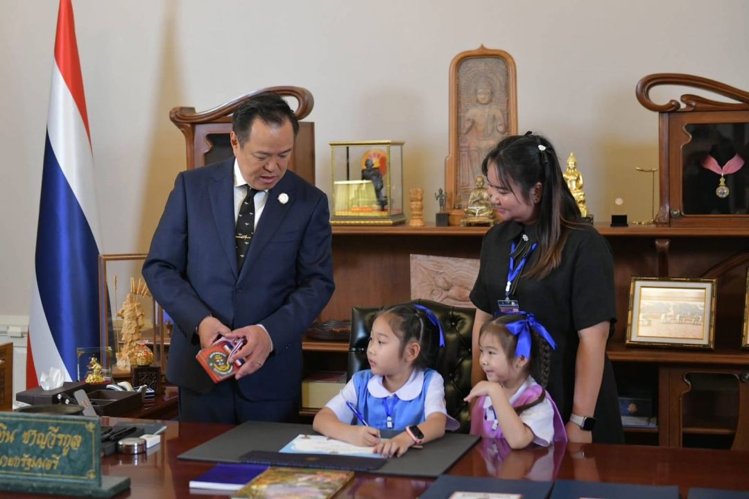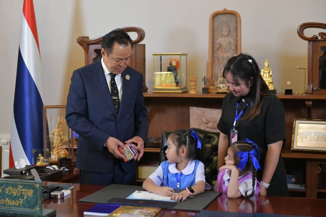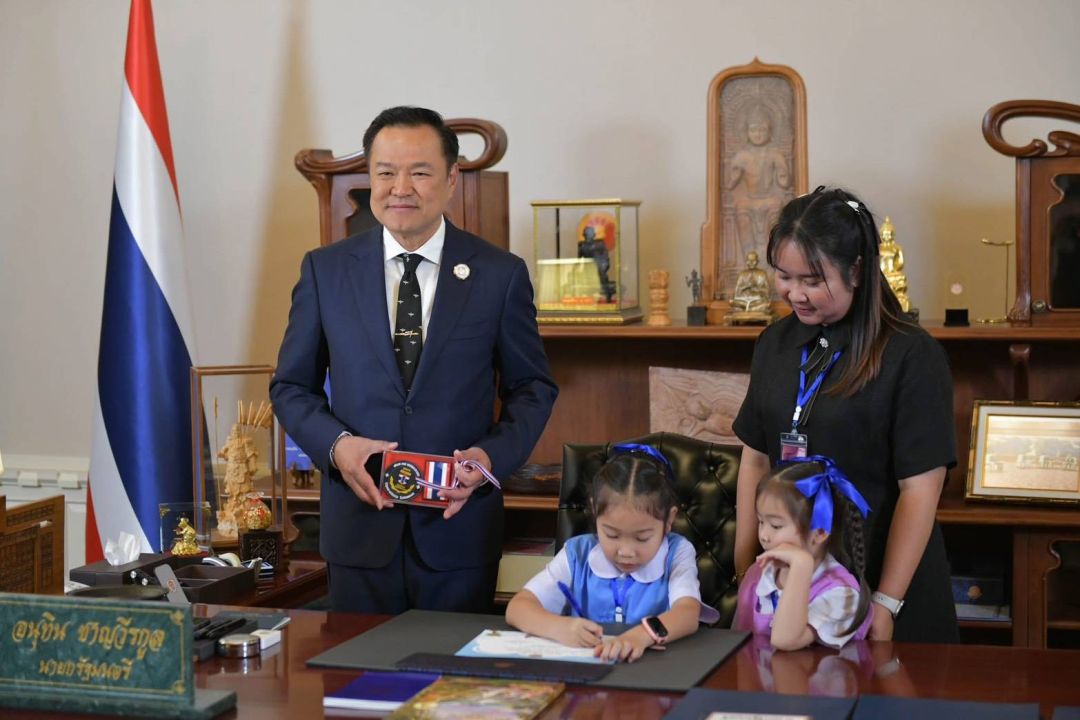 อนุทิน หยิบกล่องริบบิ้นลายธงชาติ บอกลูกสาว 'จ่าเพียว' นี่อาร์มชื่อพ่อหนู นายกเก็บไว้ที่โต๊ะตลอด