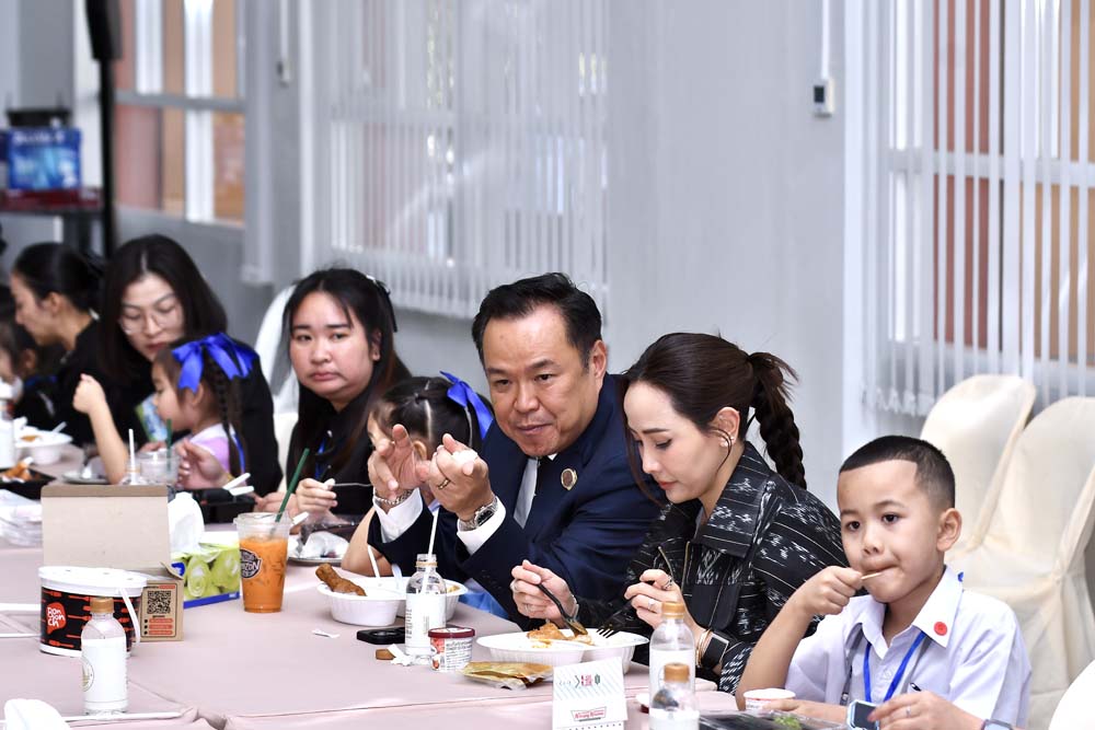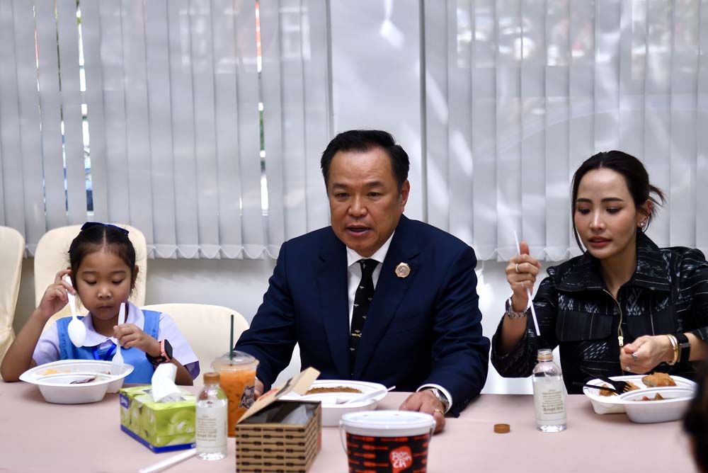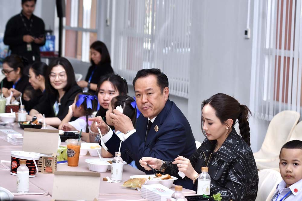 จากนั้น เวลาประมาณ 12.00 น. นายกรัฐมนตรีได้ร่วมรับประทานอาหารกลางวันกับครอบครัววีรชน ก่อนที่จะเดินทางไปยังกองทัพอากาศ เพื่อร่วมกิจกรรมงานวันเด็ก