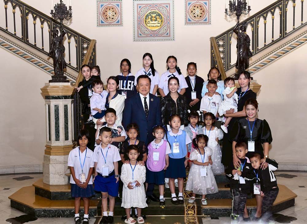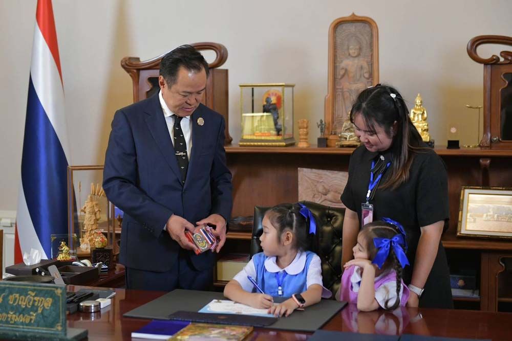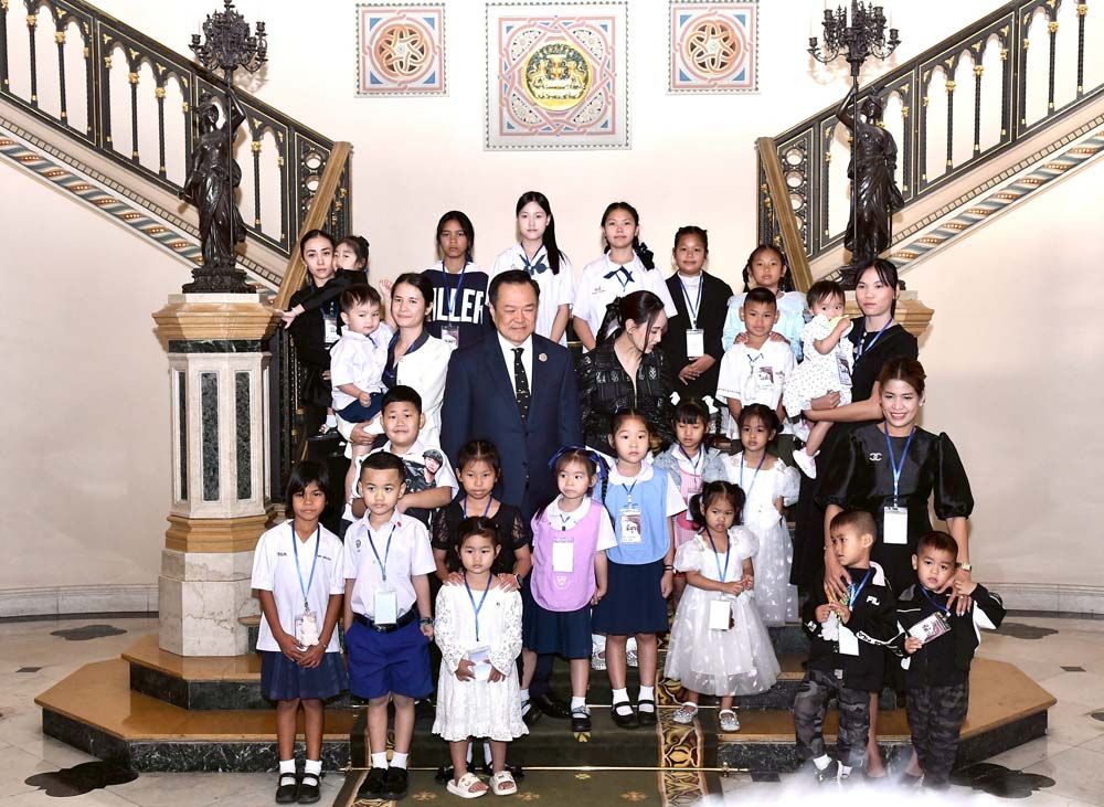 จากนั้นเวลา 09.43 น.นายกฯ ถ่ายภาพคู่ร่วมกับเด็กและเยาวชน (เด็กพิการและด้อยโอกาสจากกระทรวงการพัฒนาสังคมและความมั่นคงของมนุษย์ (พม.) และบุตรธิดาทหารกล้าที่เสียชีวิตจากเหตุการณ์สู้รบในพื้นที่ชายแดนไทย - กัมพูชา) จำนวน 26 คน ที่เข้าเยี่ยมชมตึกไทยคู่ฟ้าและได้นั่งเก้าอี้นายกฯ ที่ห้องทำงานนายกฯ ชั้น 2 ตึกไทยคู่ฟ้า