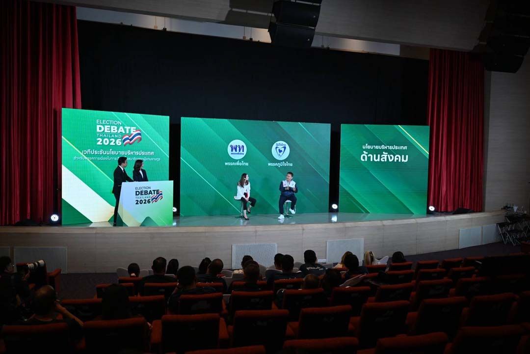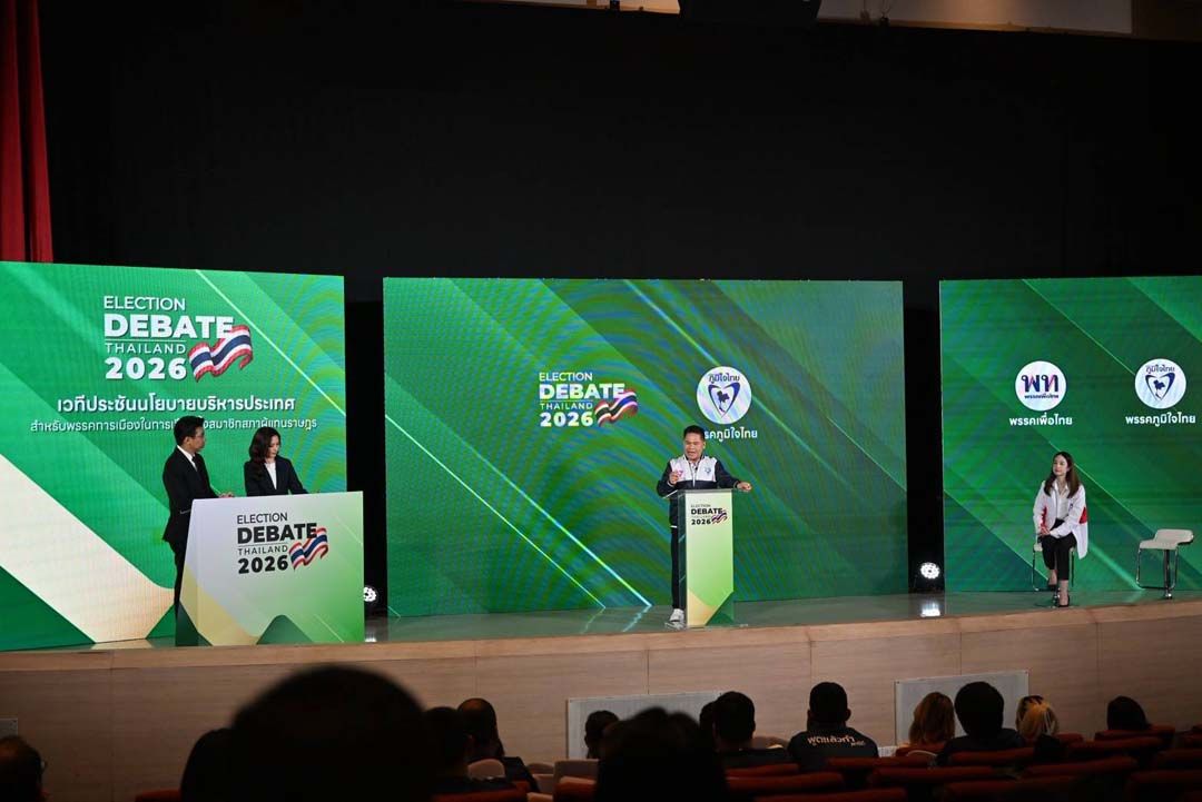 เมื่อวันที่ 12 มกราคม 2569 สำนักงานคณะกรรมการการเลือกตั้ง (กกต.) จัดบันทึกเทปเวที "Election Debate Thailand 2026" ประชันนโยบายระดับประเทศ ซึ่งวันนี้เป็นแรก ซึ่งเป็นกลุ่มพรรคการเมืองที่ส่งผู้สมัคร 300 - 400 เขต จำนวน 5 พรรค ได้แก่ พรรคเพื่อไทย , พรรคภูมิใจไทย , พรรคประชาชน , พรรคประชาธิปัตย์ และพรรคกล้าธรรม โดยประชันนโยบายใน 2 ประเด็น คือ 1.ประเด็นด้านสังคม ซึ่งพรรคเพื่อไทยประชันนโยบายกับพรรคภูมิใจไทย และพรรคกล้าธรรม โดยพรรคเพื่อไทย ส่ง น.ส.ธีราภา ไพโรหกุล ผู้สมัคร สส.แบบบัญชีรายชื่อ ส่วนพรรคภูมิใจไทย ส่ง นายวราวุธ ศิลปอาชา ผู้สมัคร สส.แบบบัญชีรายชื่อ พรรคภูมิใจไทย ขณะที่พรรคกล้าธรรม เดิม น.ส.นฤมล ภิญโญสินวัฒน์ หัวหน้าพรรคกล้าธรรม เป็นตัวแทนแสดงวิสัยทัศน์ แต่ติดภารกิจปราศรัยหาเสียงที่ จ.ร้อยเอ็ด จึงไม่สามารถมาเวทีประชันนโยบายได้