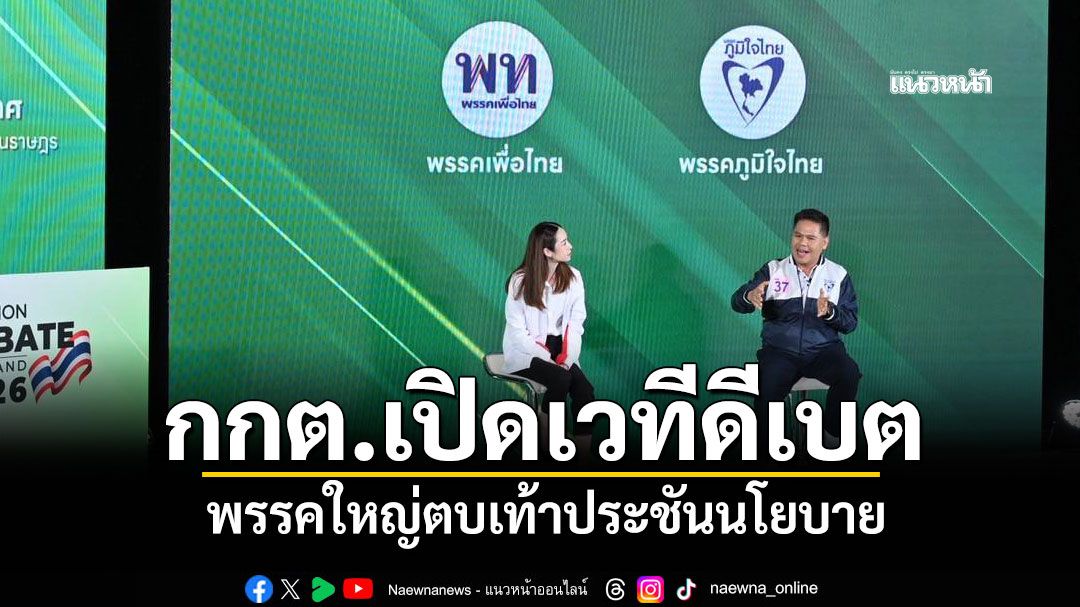 "กกต."เปิดเวทีดีเบต 4 พรรคใหญ่ตบเท้าประชันนโยบาย พท.ชูรัฐลงทุนคน รับสังคมสูงวัยขึ้น พร้อมบัญชีเด็กแรกเกิด ปราบยาเสพติดครบวงจร ด้าน ภท.โชว์ขยายอายุเกษียณ ดึงเอกชนสร้างหลัก สูตรเรียนออนไลน์ตอบโจทย์ตลาดแรงงาน ส่วน ปชป.วัดวิสัยทัศน์การศึกษากับ ปชน. เตรียมนำออกอากาศทั่วประเทศต้น ก.พ.69