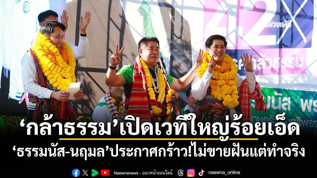 "กล้าธรรม"เปิดเวทีใหญ่ร้อยเอ็ด คนฟังล้นพื้นที่ "ธรรมนัส-นฤมล"ประกาศกร้าว!ไม่ขายฝันแต่ทำจริง ทุบหนี้-ลดดอก ยึดที่ดินนายทุนคืนเกษตรกร ยกระดับข้าวหอมมะลิ ลั่นไม่แคร์โพล เชื่อเสียงจากการลงพื้นที่ ปักหมุดหลายเขตแน่