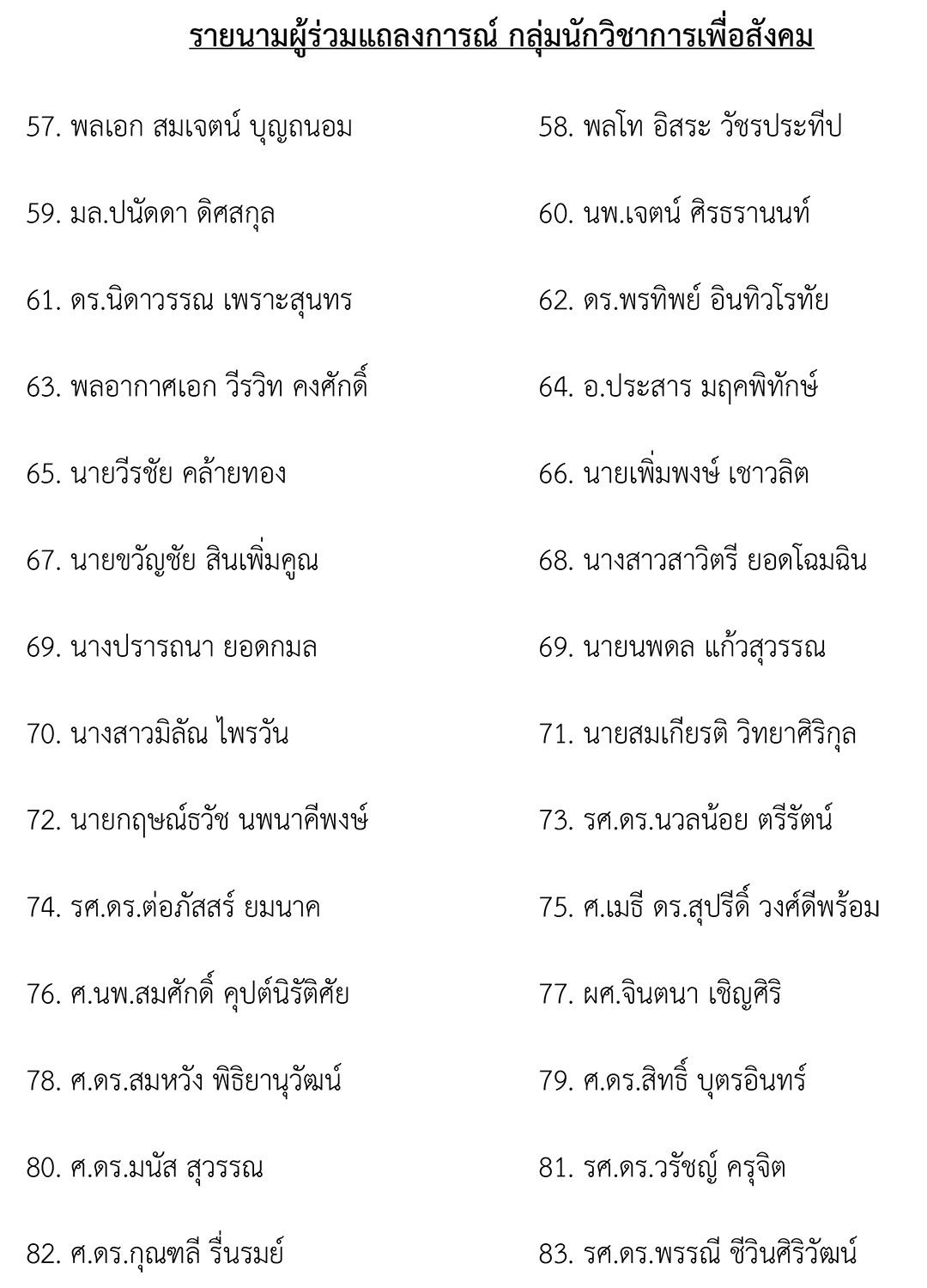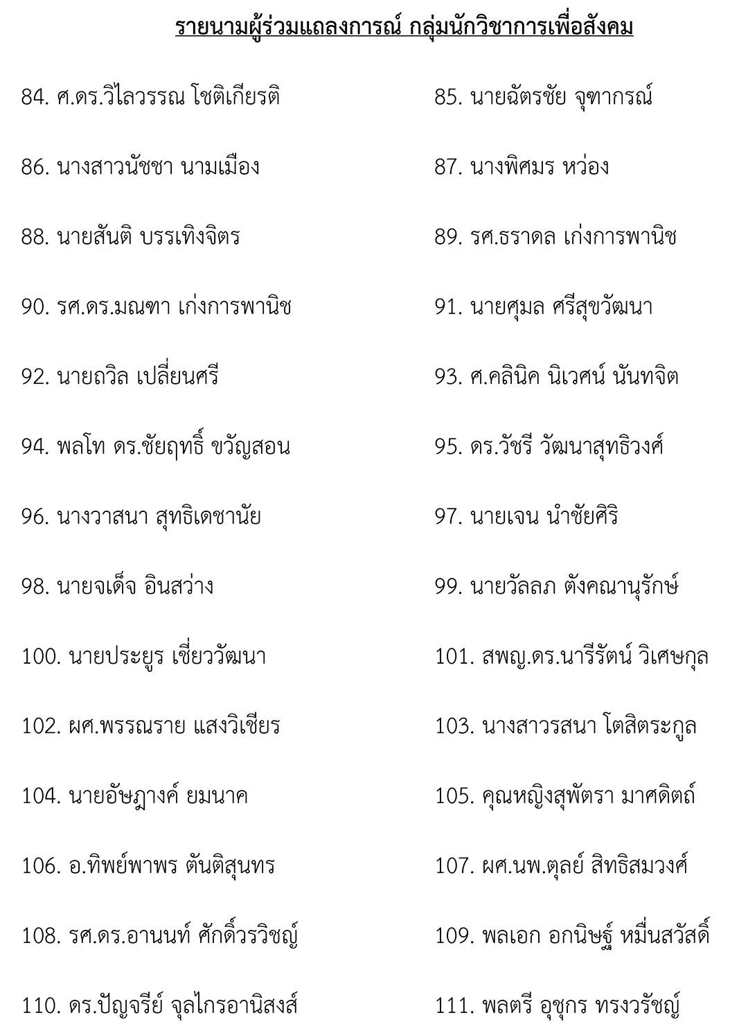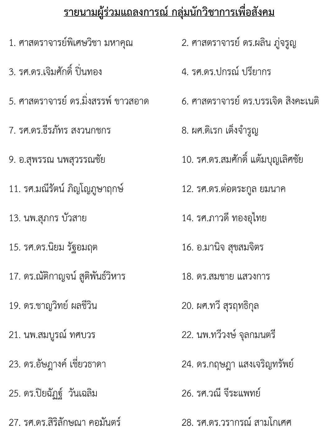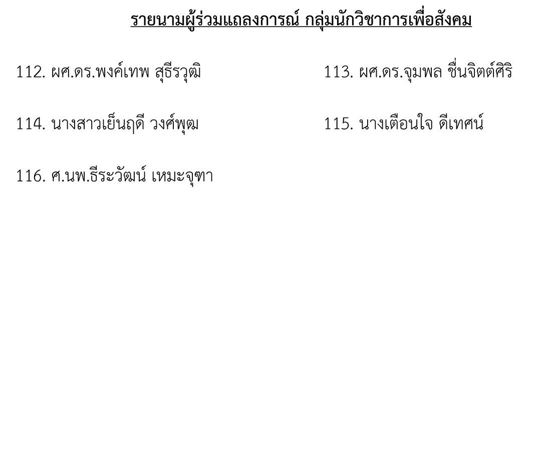 รายนามผู้ร่วมแถลงการณ์ กลุ่มนักวิชาการเพื่อสังคม