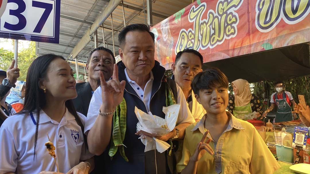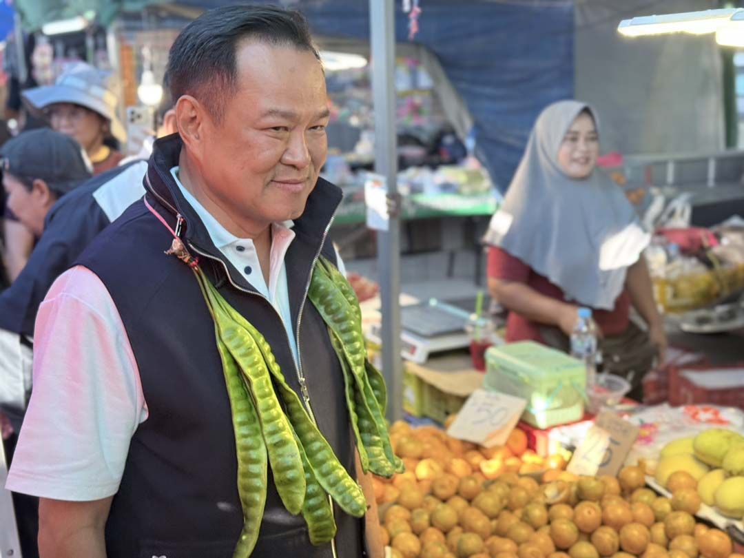 จากนั้น นายอนุทิน แวะร้านผัดซีอิ๊ว และซื้อโกยซีหมี่ โรยด้วยหนังไก่ทอด ก่อนจะชิมทันที พร้อมแวะร้านปลาหมึกย่าง พร้อมซื้อหมึกย่างแจกคณะผู้ติดตาม ต่อมานายอนุทิน เดินมายังร้านฝั่งตรงข้าม ซึ่งเป็นร้านขายผลไม้ โดยแม่ค้าพยายามชวนให้ซื้อ และชิมส้ม แต่นายอนุทิน ส่ายหน้า และซื้อชมพู่แทน บางช่วงมีแม่ค้ามุสลิมในตลาด ได้อวยพรนายอนุทิน ขอให้ได้กลับมาเป็นนายกฯ ต่อ ทำให้นายอนุทินได้อามีนรับพรด้วยการใช้มือลูบไปที่ใบหน้า และตบศรีษะตัวเองเป็นการรับพร