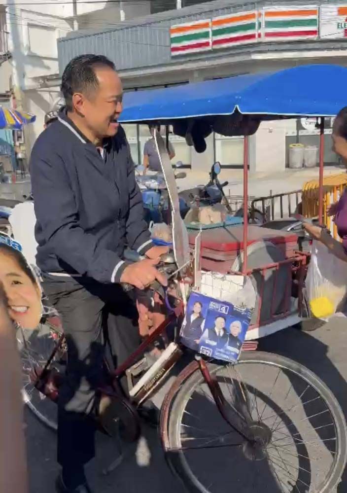 ในช่วงท้ายนายอนุทิน ได้ขึ้นคร่อมจักรยาน ซึ่งเป็นจักรยานที่ติดชื่อ และรูปผู้สมัคร พร้อมชูนิ้วเป็นเบอร์ 4 ซึ่งเป็นหมายเลขของนางสาวพลอยทะเล ก่อนจะปั่นจักรยาน ออกมาหาเสียงนอกตลาดเกษตร