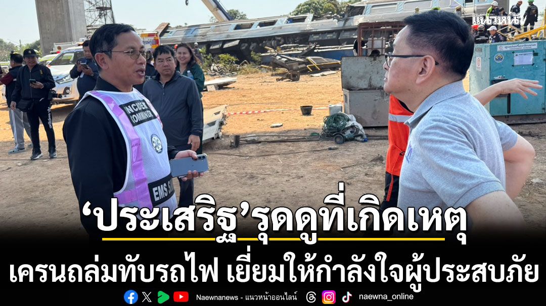 ”ประเสริฐ“ รุดดูที่เกิดเหตุเครนก่อสร้างถล่มทับรถไฟ เยี่ยมให้กำลังใจผู้ประสบภัยที่โรงพยาบาล พร้อมประสานการรถไฟฯ จัดหาที่พักชั่วคราวให้ผู้โดยสารที่ยังตกค้าง
